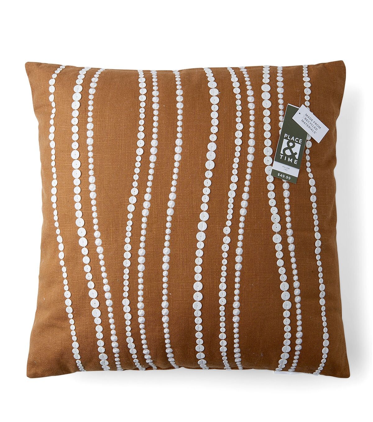 Take your spring home decor up a level with the Spring Brown Sequin Pillow by Place & Time. It sports a brown shade and an embroidered wavy pattern in white using sequins of different sizes. You can place it on the sofa, couch or chair to add autumnal charm to the space.