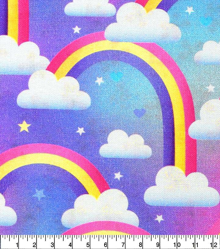 The colorful rainbows and hearts pattern is sure to brighten up any room or outfit, making it a great choice for a variety of projects. Whether you're making a quilt, a tote bag, or a cute dress, this fabric is sure to make your creation stand out.