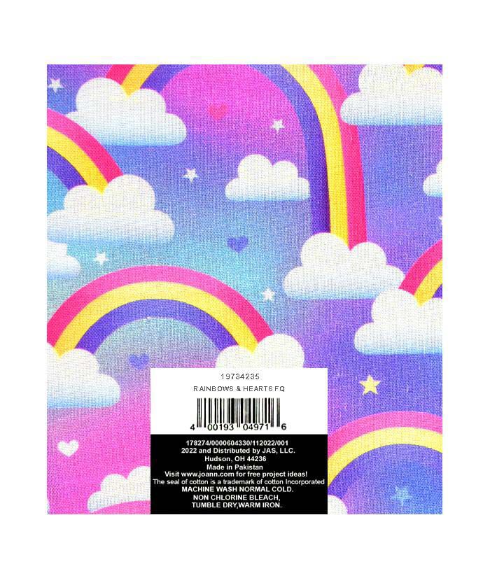 Get Creative with 18" x 20" Rainbows & Hearts Cotton Fabric Quarter 1pc by Keepsake Calico