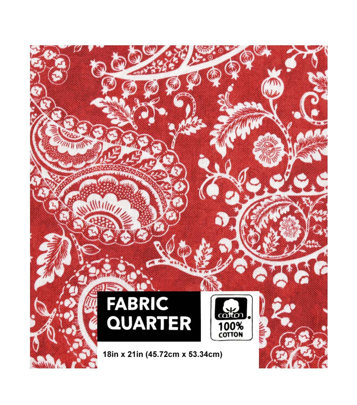 Experience the Beauty of Red Paisley with Keepsake Calico's 18" x 20" Cotton Fabric Quarter