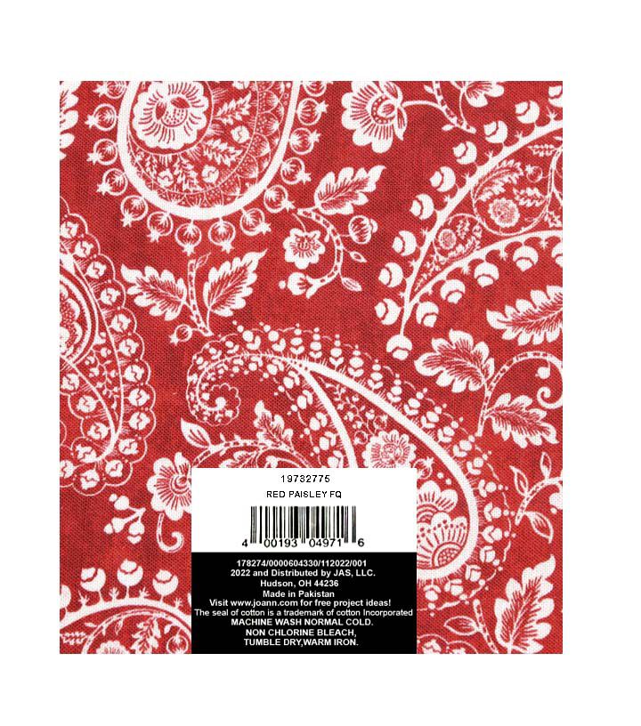 Indulge in the vibrant colors and intricate patterns of this stunning red paisley cotton fabric quarter from Keepsake Calico. Made from 100% cotton, this fabric is not only beautiful but also soft and comfortable to the touch. The 18" x 20" size is perfect for a variety of crafting projects, from quilting to home decor.