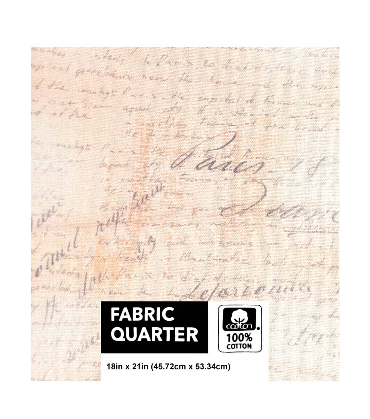 Upgrade Your Fabric Collection with 18" x 20" Script on Cream Cotton Fabric Quarter 1pc by Keepsake Calico