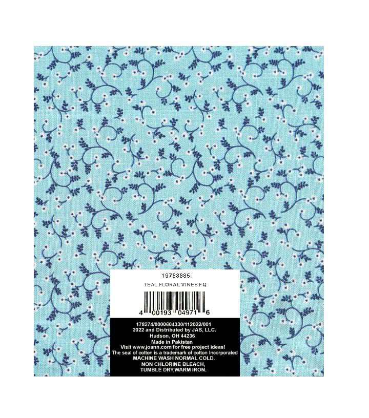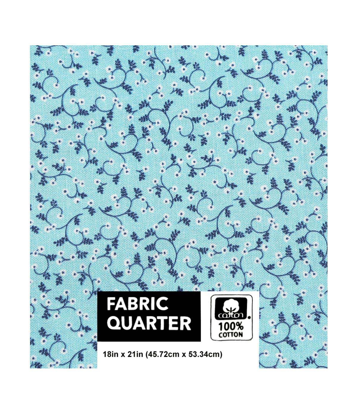 Experience the Beauty of Teal Floral Vines with Keepsake Calico's 18" x 20" Cotton Fabric Quarter