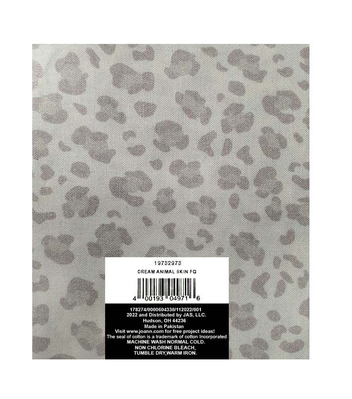 Get ready to add a touch of the wild to your next sewing project with this stunning 18" x 21" Animal Print on Cream Cotton Fabric Quarter 1pc. Made from 100% cotton, this fabric is perfect for creating unique and stylish clothing, accessories, and home decor items. The cream background perfectly complements the bold animal print, making it a versatile choice for any project.