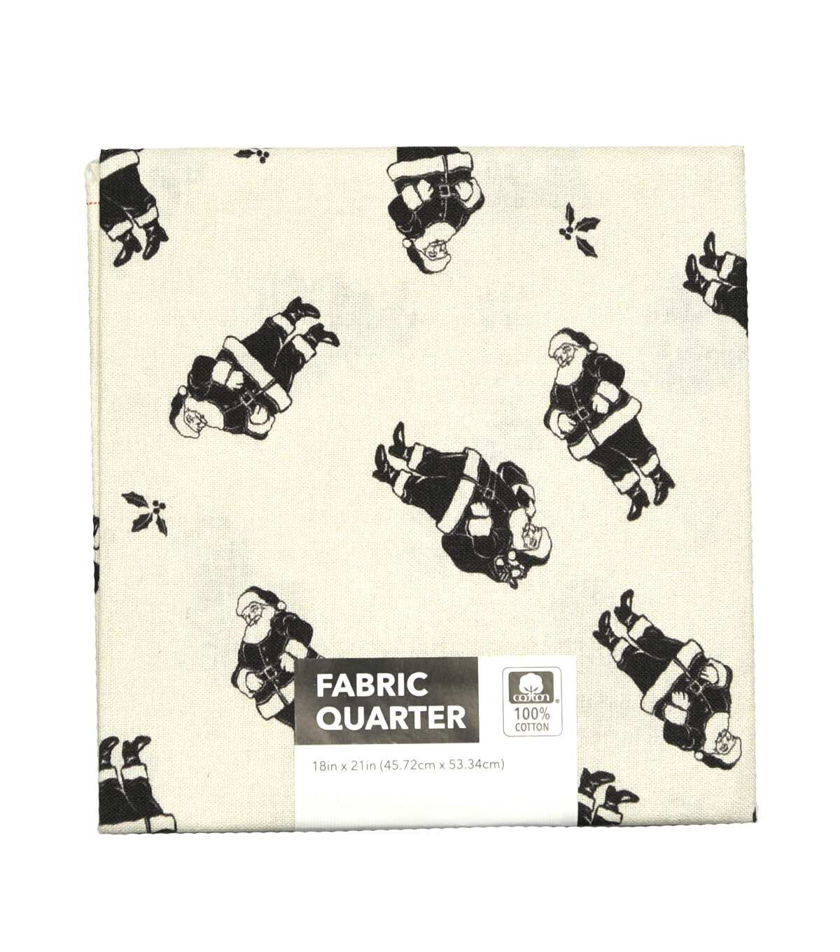 • 18" x 21" Black Santa on Ivory Christmas Cotton Fabric Quarter 1pc