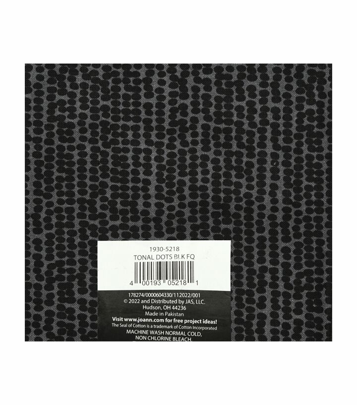 18" x 21" Black Tonal Dots Cotton Fabric Quarter 1pc by Keepsake Calico