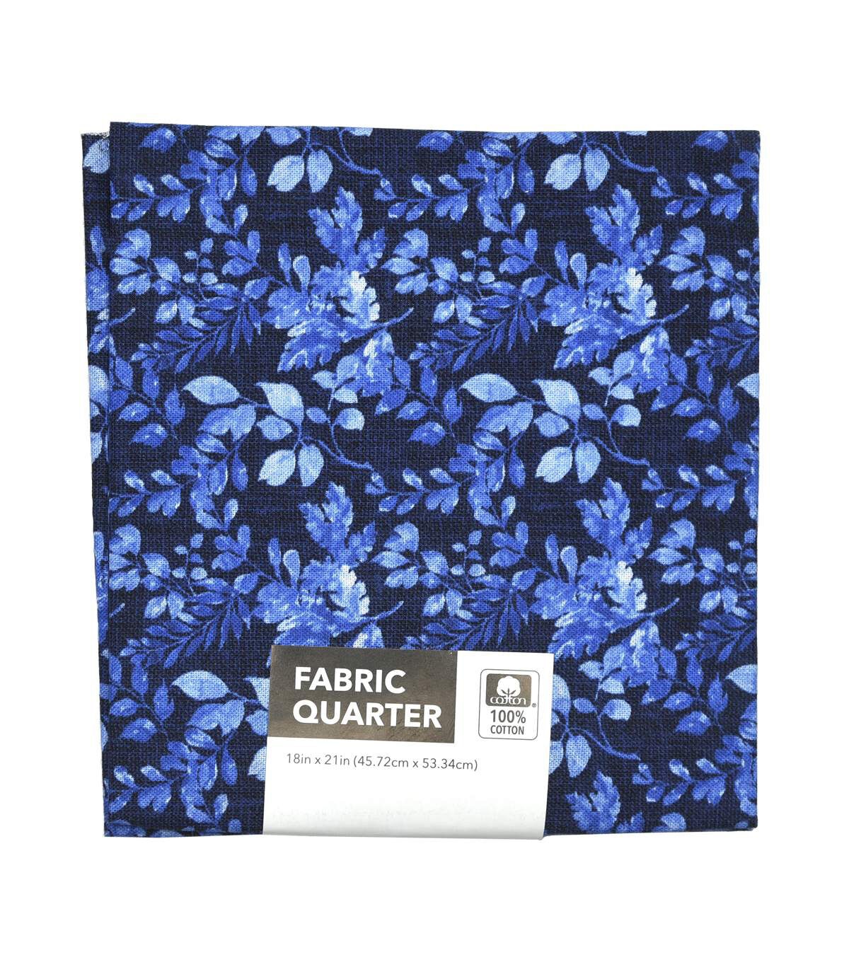 • 18" x 21" Blue Leaves Cotton Fabric Quarter 1pc by Keepsake Calico
