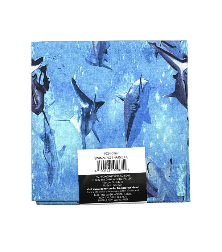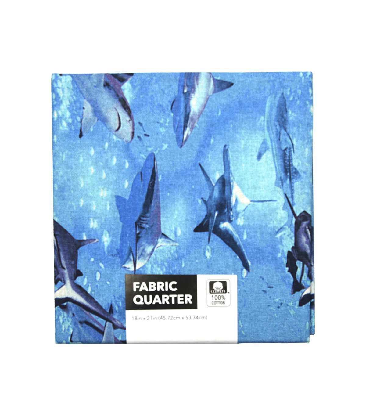 • 18" x 21" Blue Swimming Sharks Cotton Fabric Quarter 1 pc