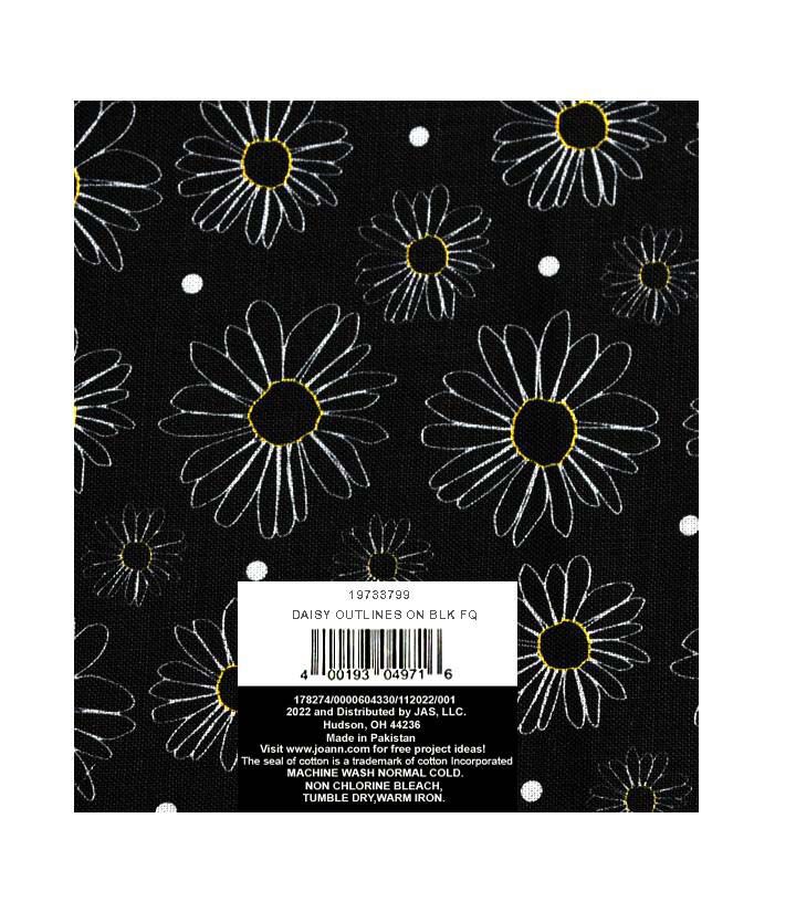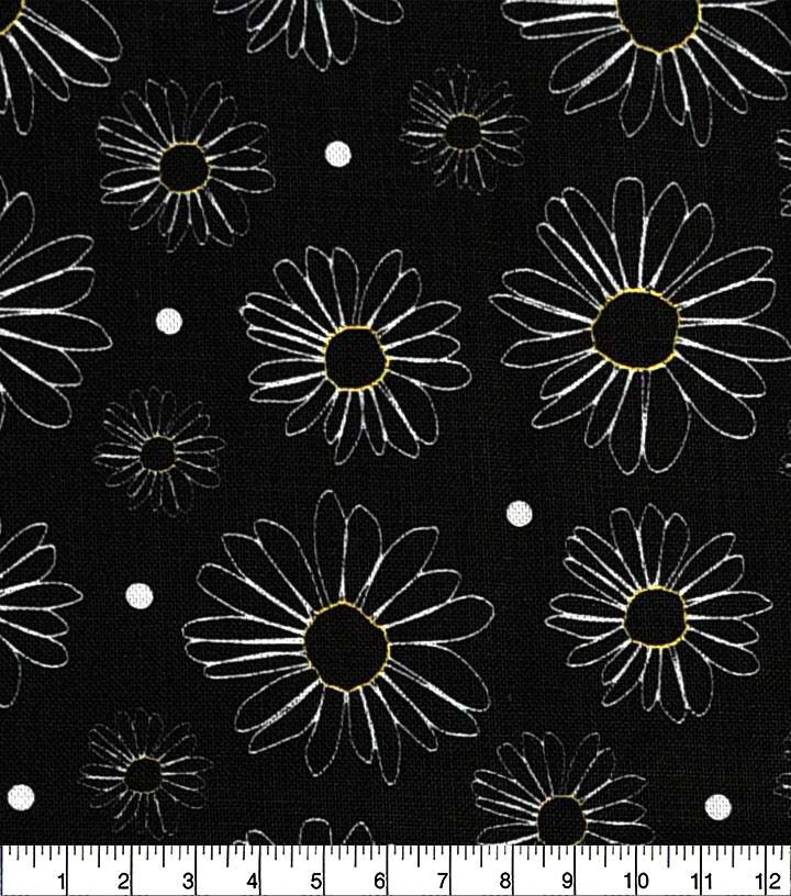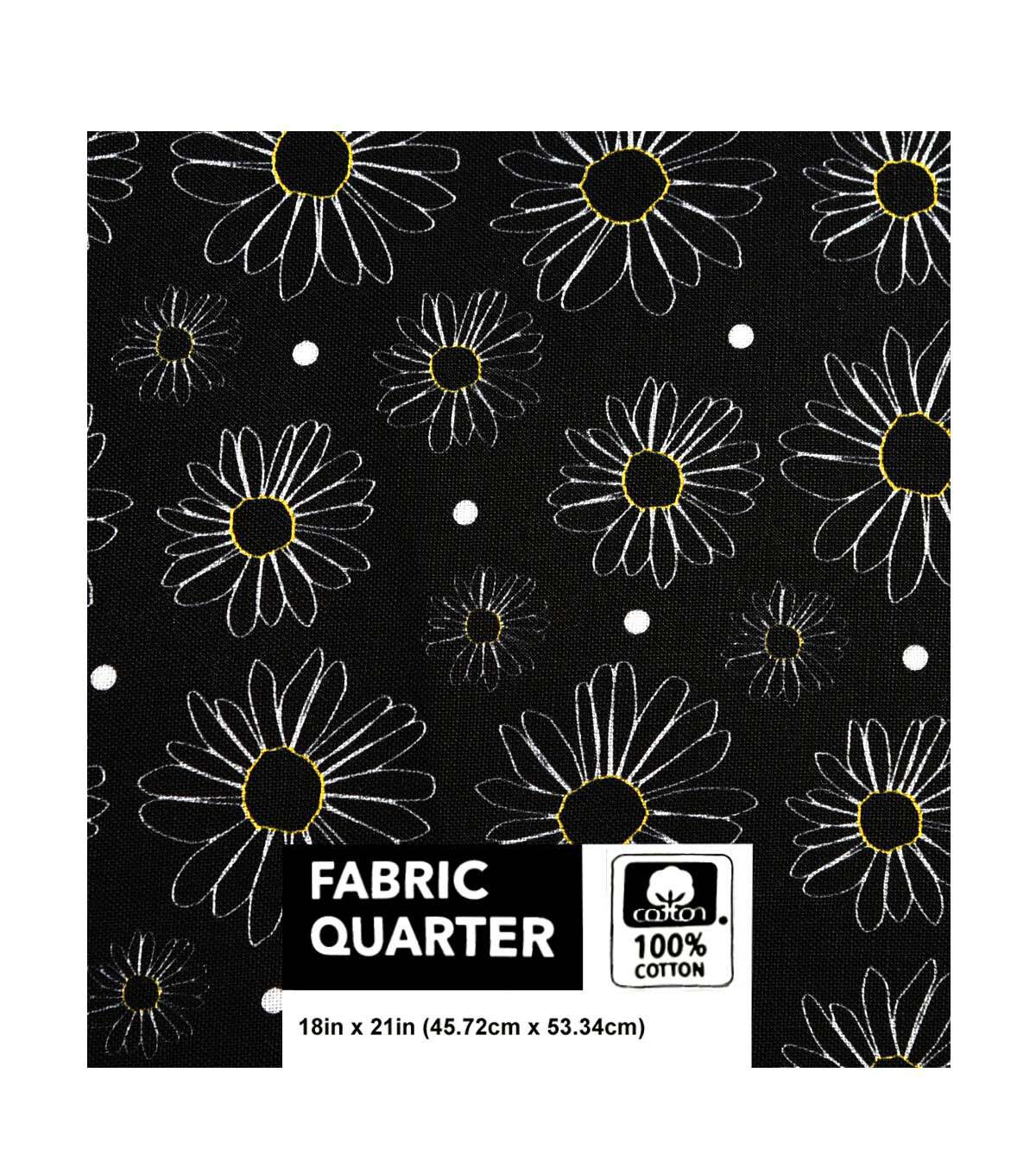 18" x 21" Daisy Outlines on Black Fabric Quarter by Keepsake Calico