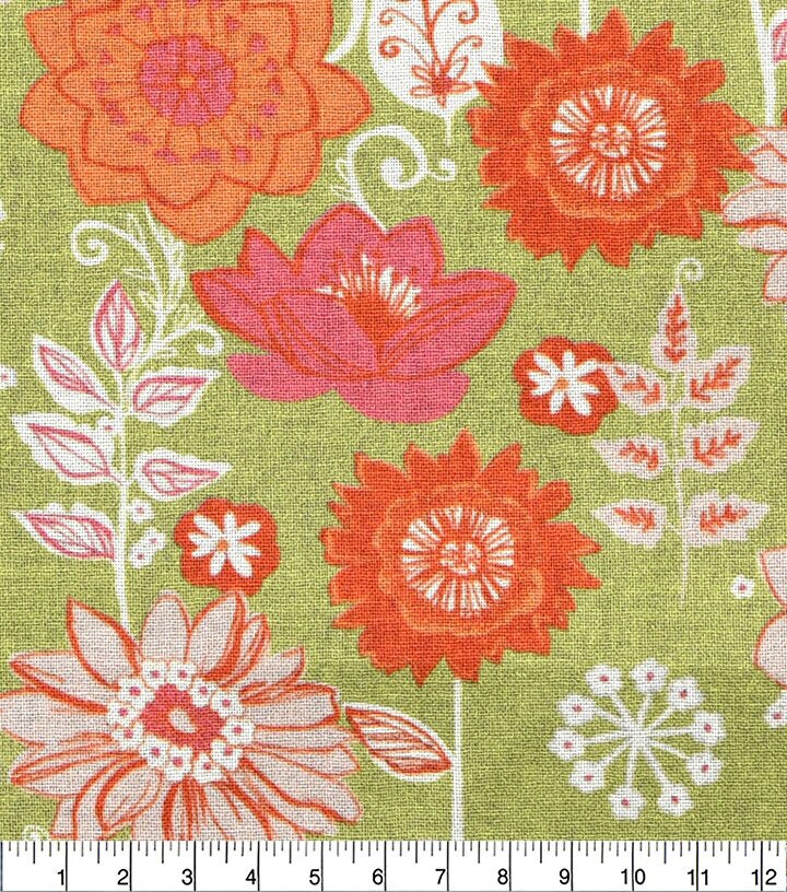 18" x 21" Floral on Green Cotton Fabric Quarter 1pc by Keepsake Calico