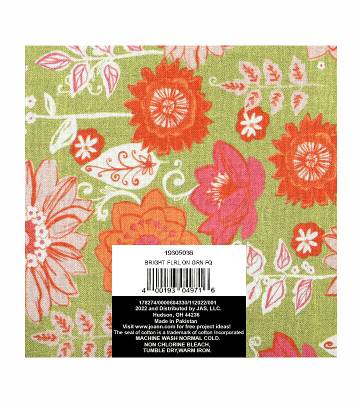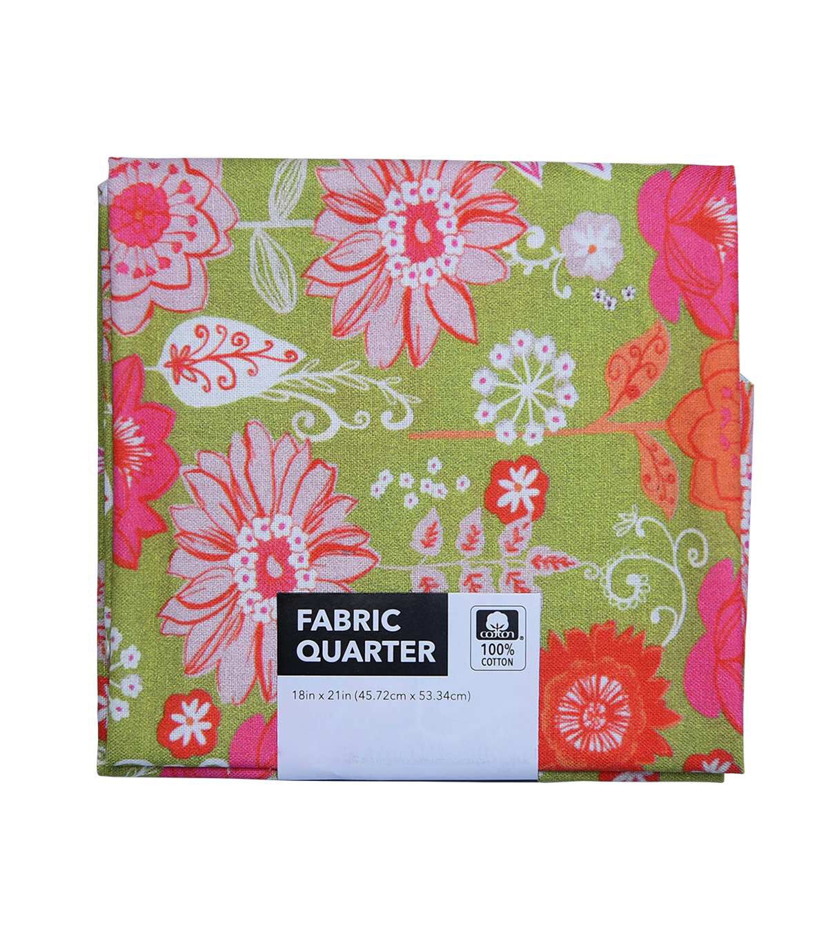 • 18" x 21" Floral on Green Cotton Fabric Quarter 1pc by Keepsake Calico
