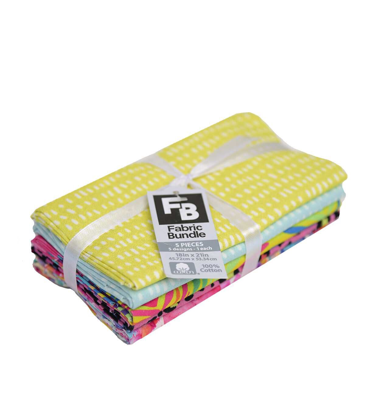 Mix and match fabric from this Fat Quarter Cotton Fabric Quarter Bundle to create lovely table runners. It contains pre-cut fabric pieces with coordinated designs. These are ideal to make quick and easy craft projects. Each pack includes five designs (one of each design). This package comprises of five 18 x 21-inch strips of high-quality 100% cotton fabric. They are available in a variety of colorful themes, each sold separately. ** Please note that these are an assorted item and you will receive one of the two bundles shown in the product images.