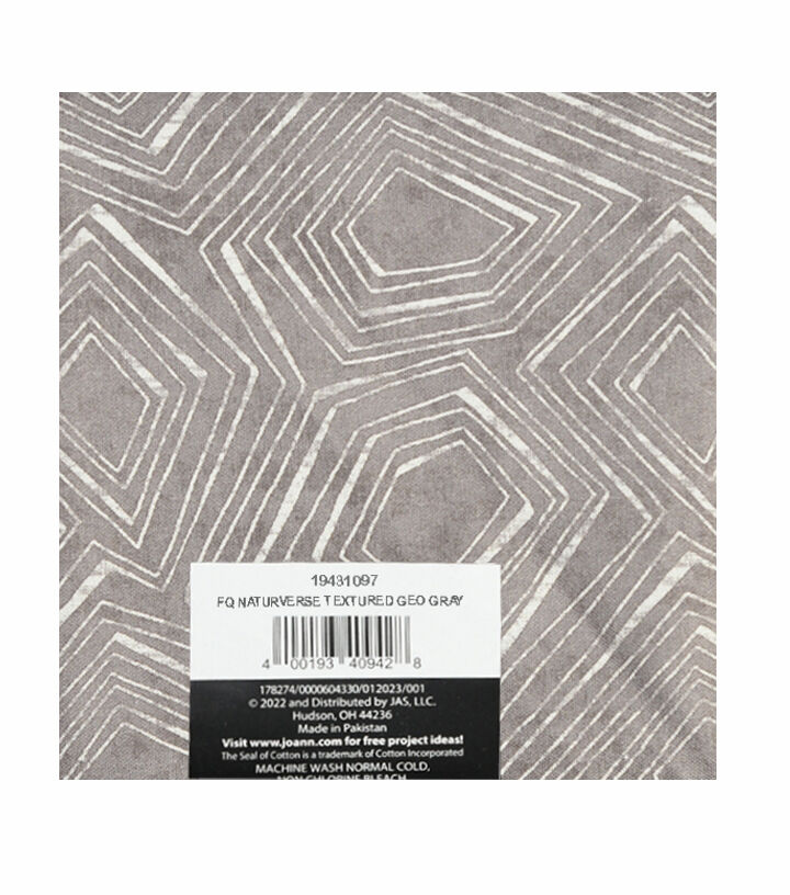 • 18" x 21" Gray Geometric Cotton Fabric Quarter 1pc by Keepsake Calico