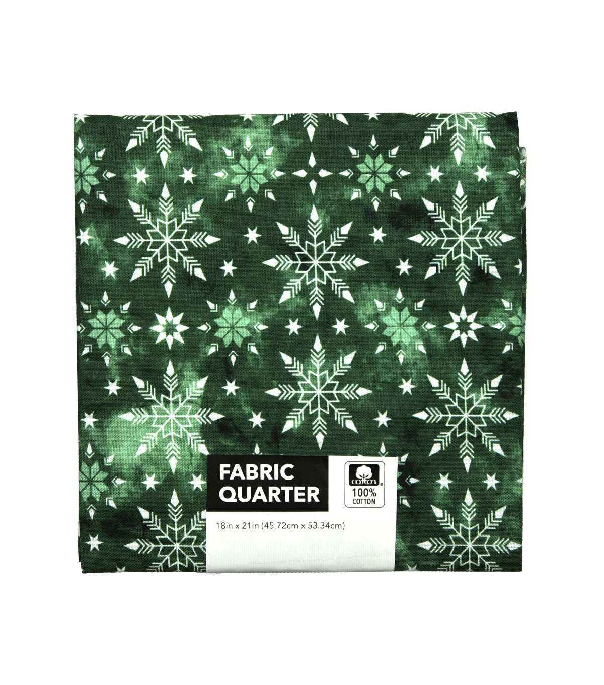 • 18" x 21" Green Snowflakes Christmas Cotton Fabric Quarter 1pc