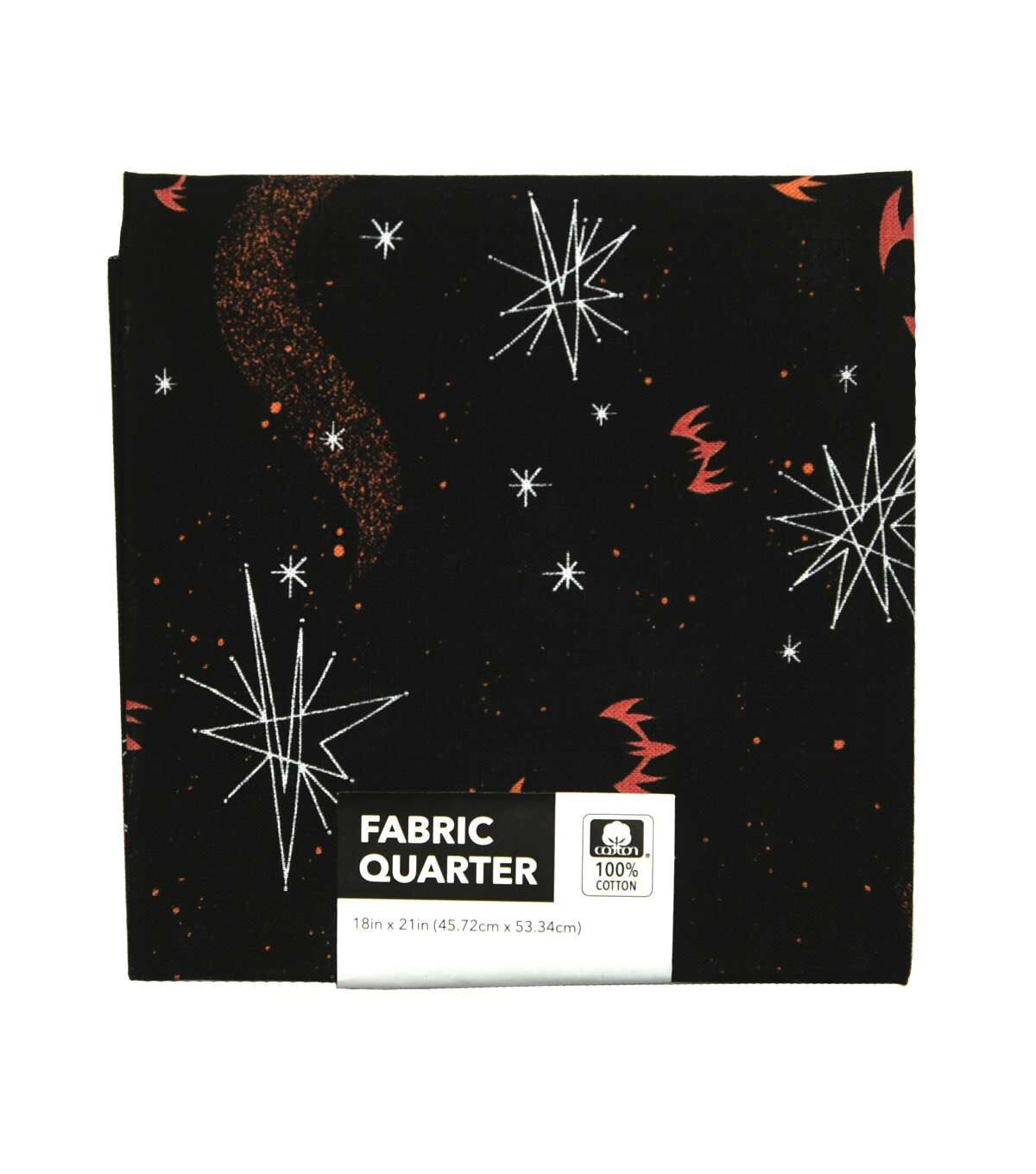 18" x 21" Halloween Bats & Starbursts on Black Cotton Fabric Quarter 1pc