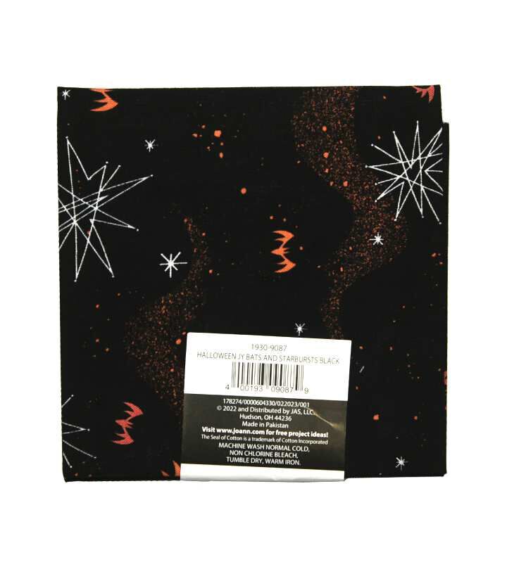 • 18" x 21" Halloween Bats & Starbursts on Black Cotton Fabric Quarter 1pc