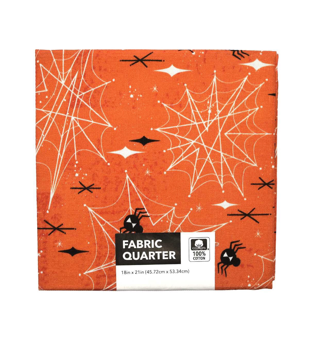 • 18" x 21" Orange Spider Web Cotton Fabric Quarter 1pc