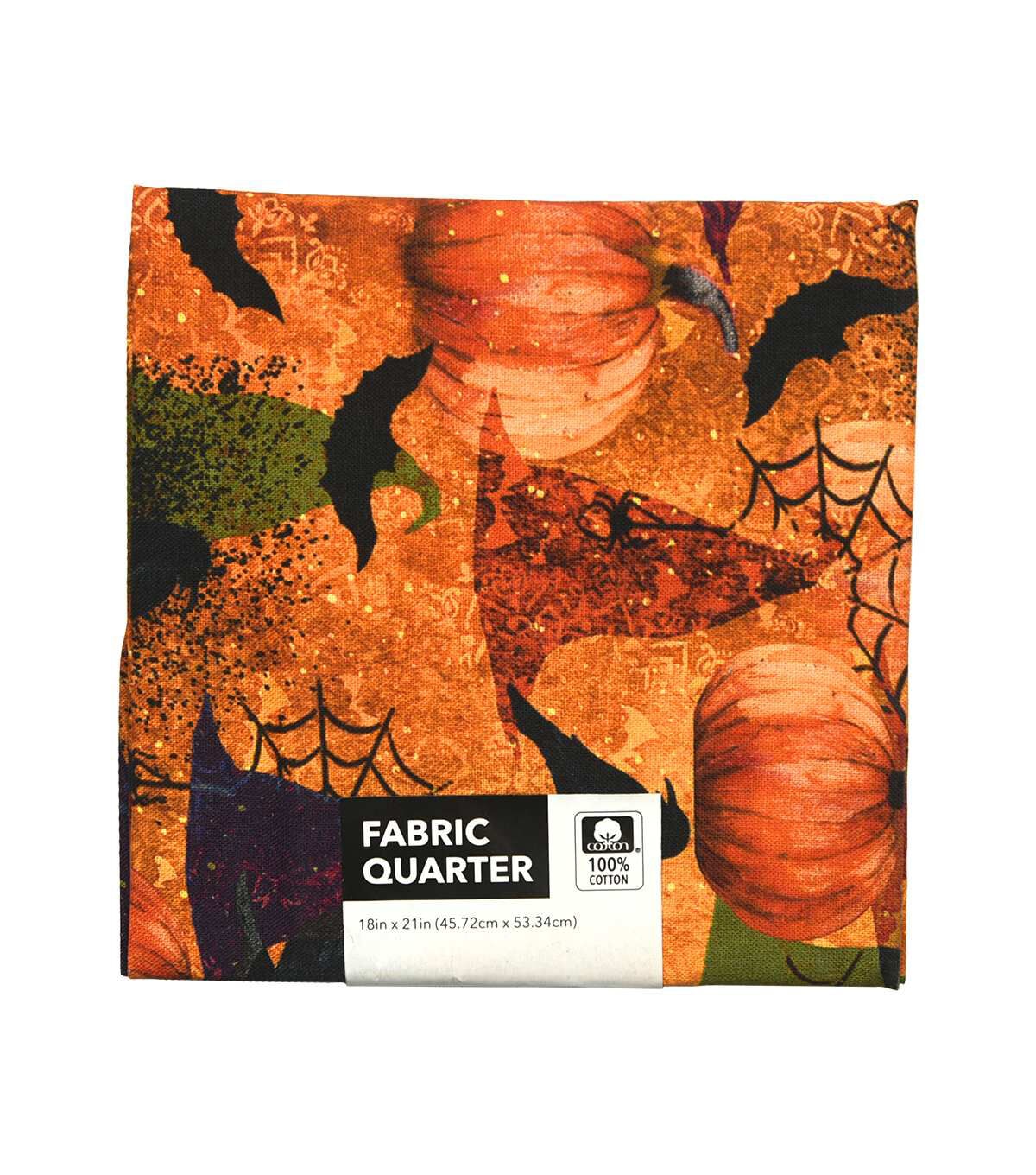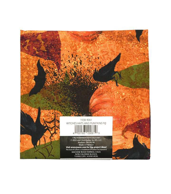 • 18" x 21" Orange Witches Hats & Pumpkins Cotton Fabric Quarter 1pc
