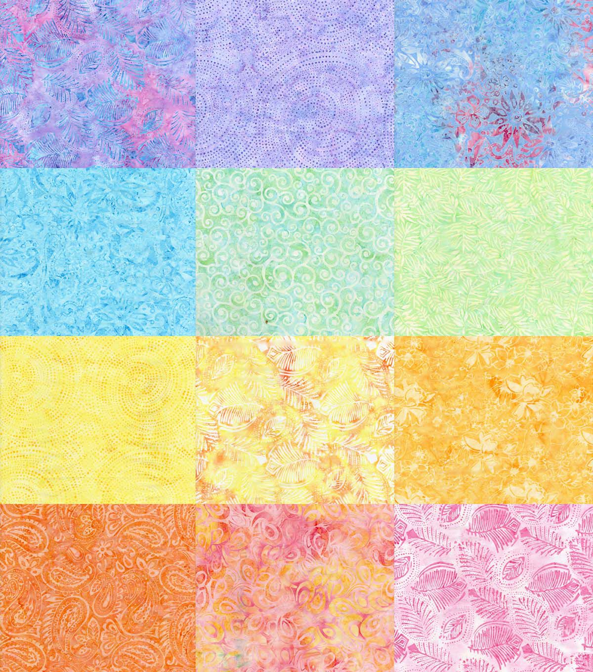 • 18" x 21" Pastel Batik Cotton Fat Quarter Bundle 12pc