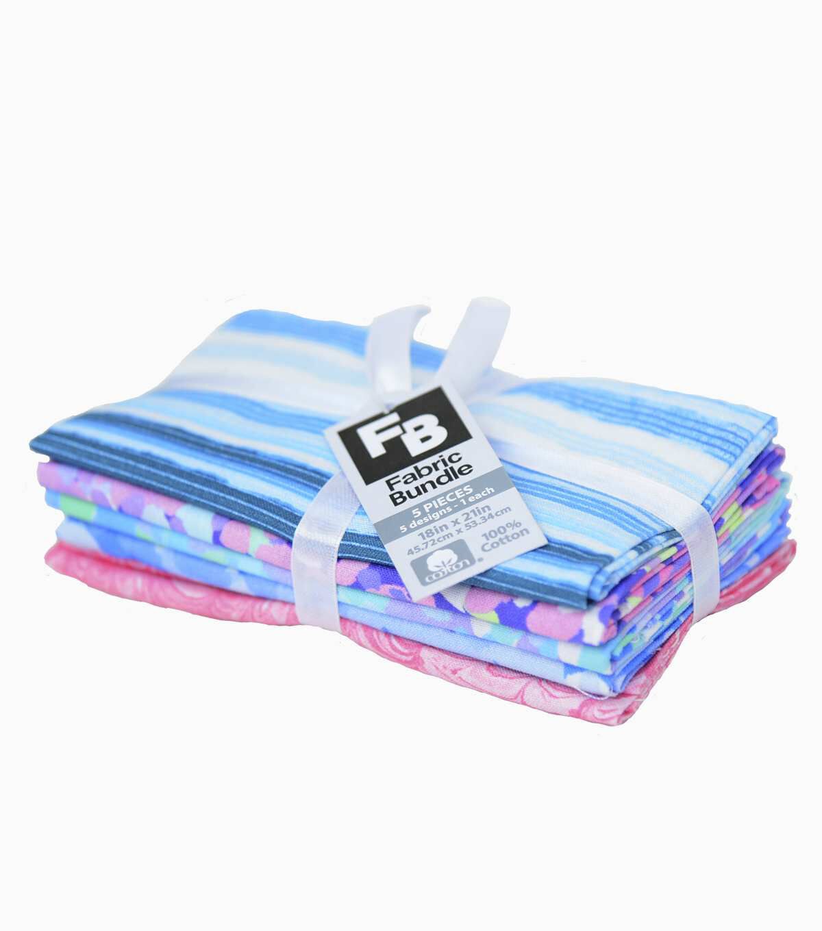 Mix and match fabric from this Fat Quarter Cotton Fabric Quarter Bundle to create lovely table runners. It contains pre-cut fabric pieces with coordinated designs. These are ideal to make quick and easy craft projects. Each pack includes five designs (one of each design). This package comprises of five 18 x 21-inch strips of high-quality 100% cotton fabric. They are available in a variety of colorful themes, each sold separately. ** Please note that these are an assorted item and you will receive one of the two bundles shown in the product images.