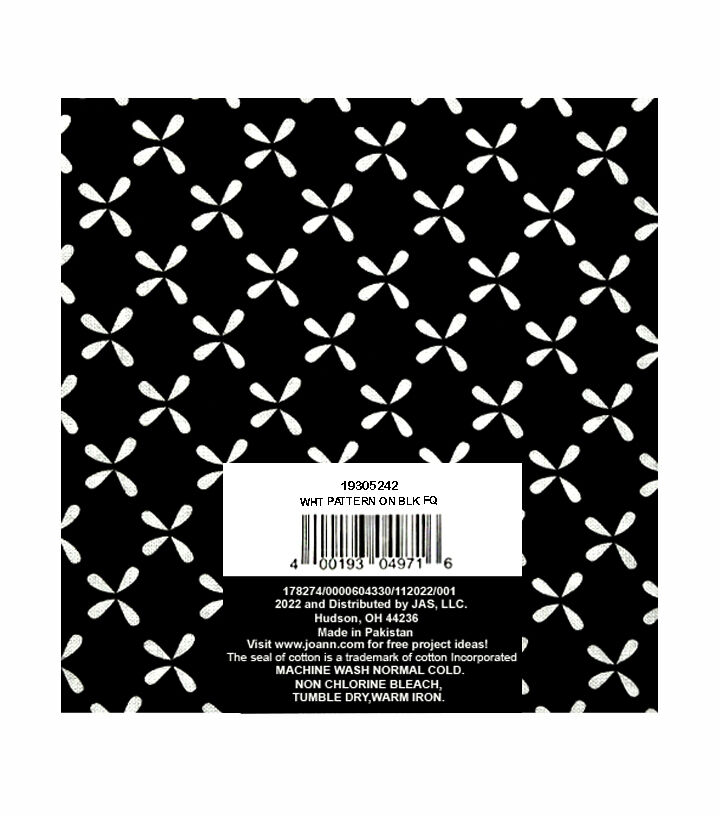 • 18" x 21" Pattern on Black Cotton Fabric Quarter 1pc by Keepsake Calico