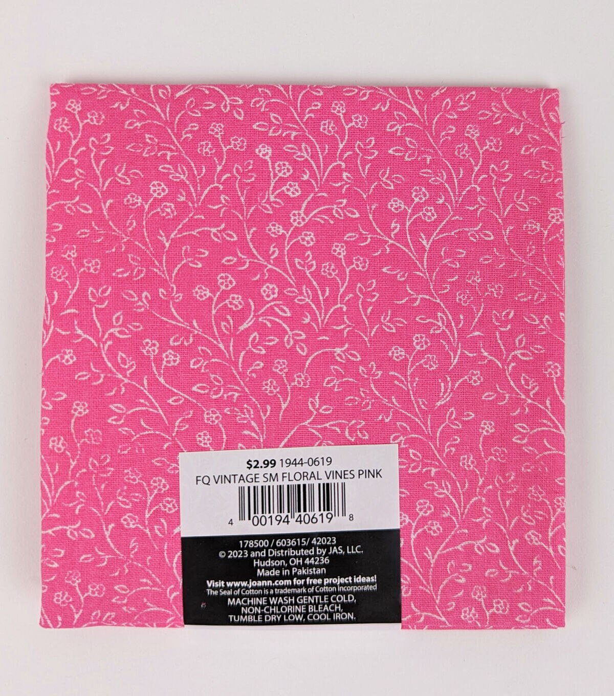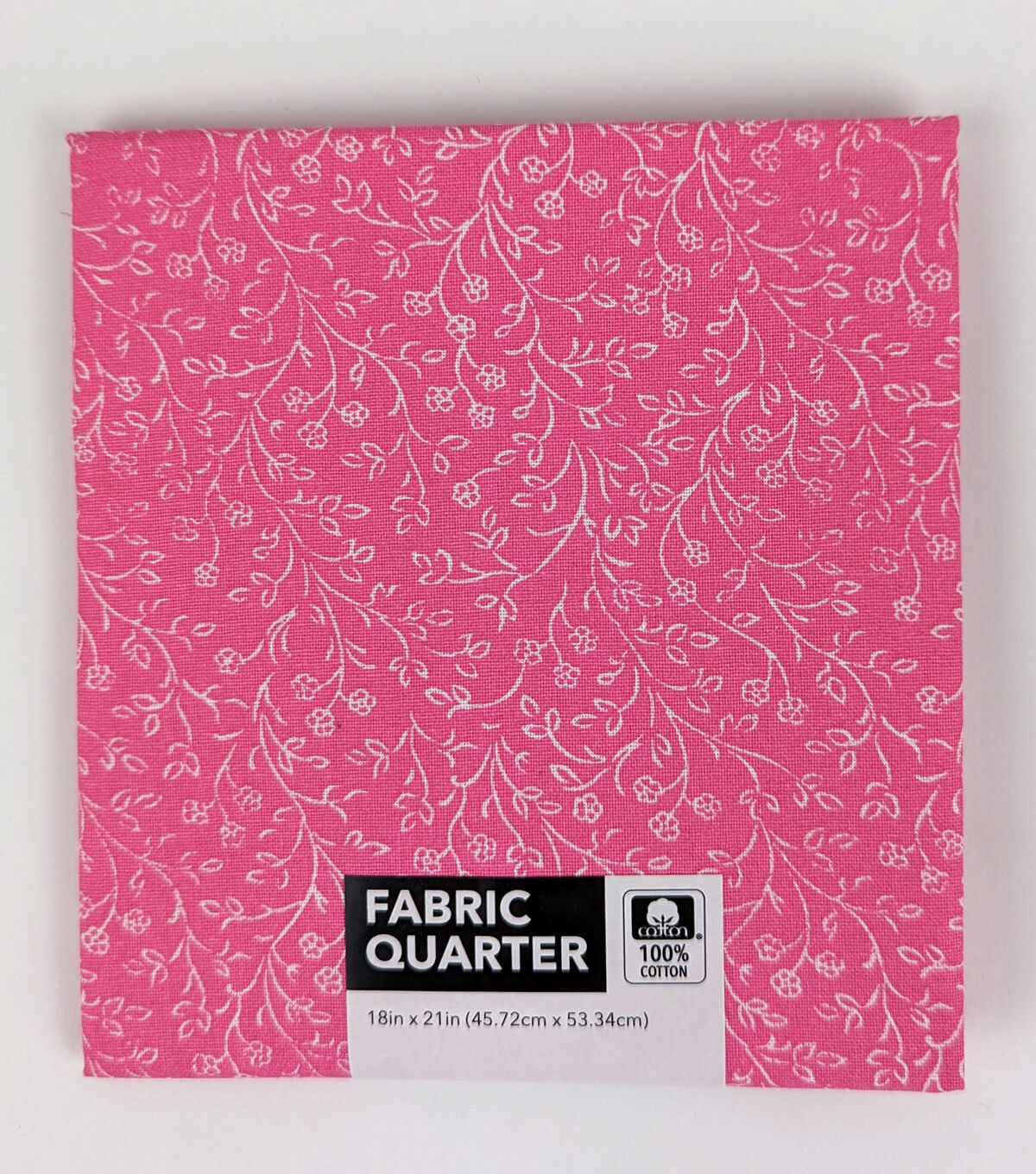 • 18" x 21" Pink Vines Cotton Fabric Quarter 1pc by Keepsake Calico