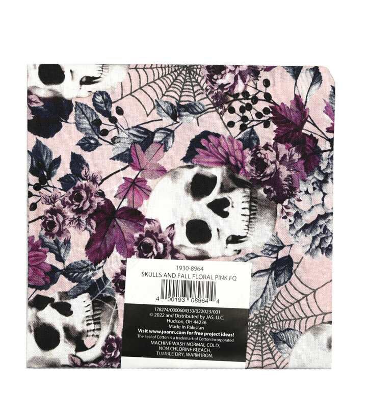 • 18" x 21" Skulls & Fall Floral On Pink Cotton Fabric Quarter 1pc