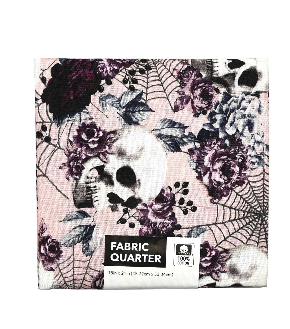 18" x 21" Skulls & Fall Floral On Pink Cotton Fabric Quarter 1pc
