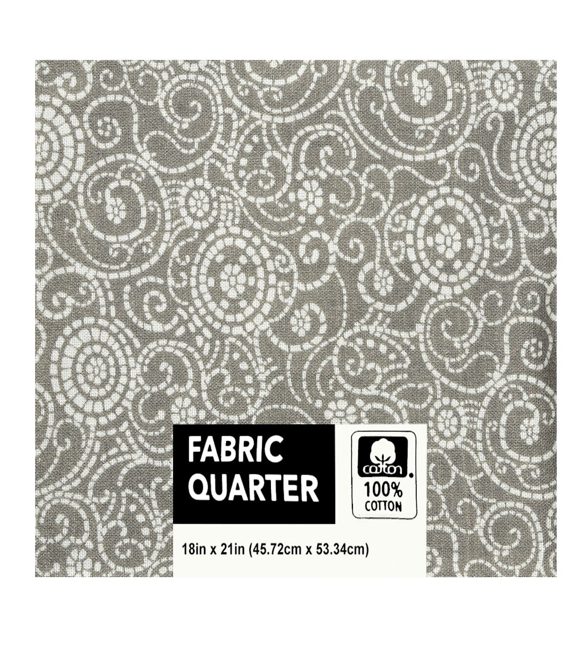 18" x 21" Swirls on Gray Cotton Fabric Quarter 1pc by Keepsake Calico