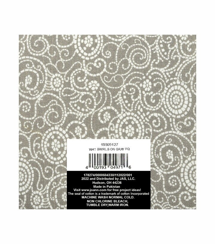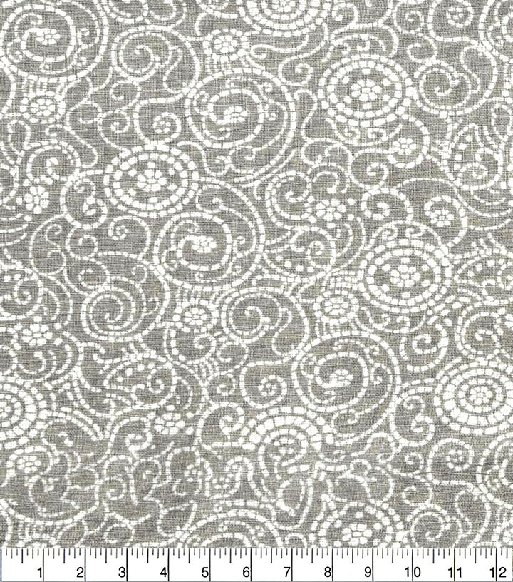 • 18" x 21" Swirls on Gray Cotton Fabric Quarter 1pc by Keepsake Calico
