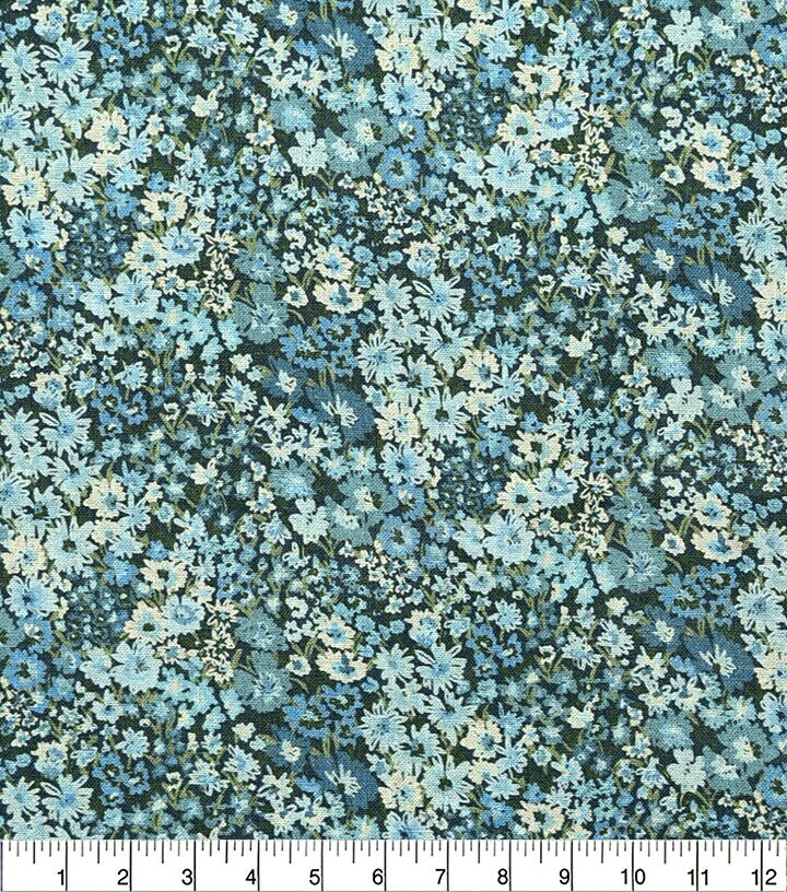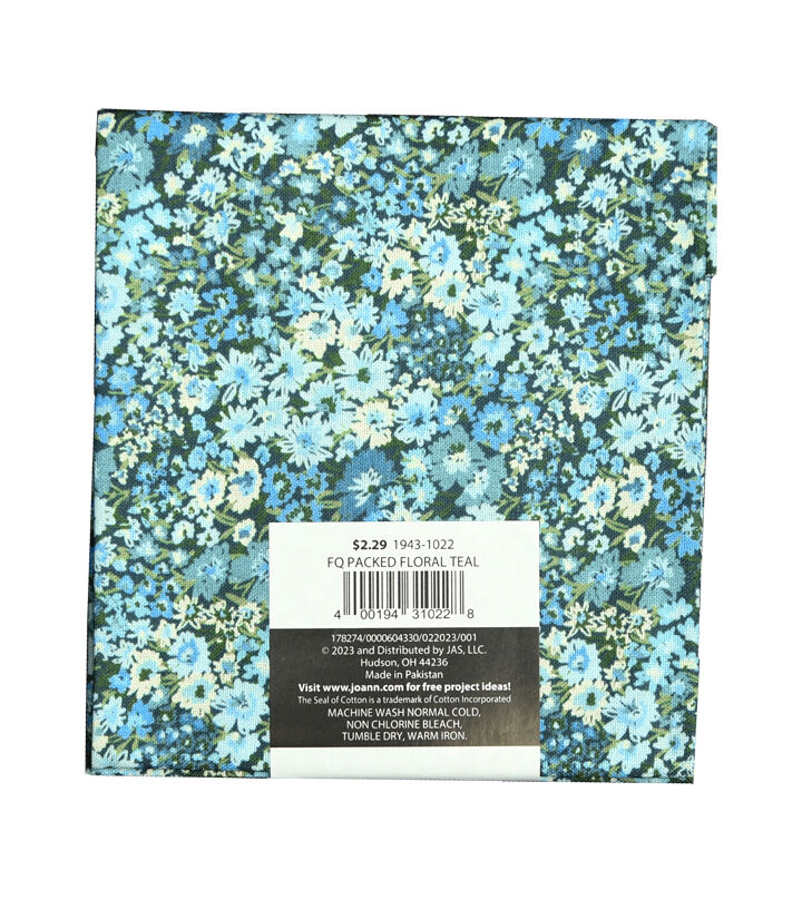 • 18" x 21" Teal Floral Cotton Fabric Quarter 1pc by Keepsake Calico