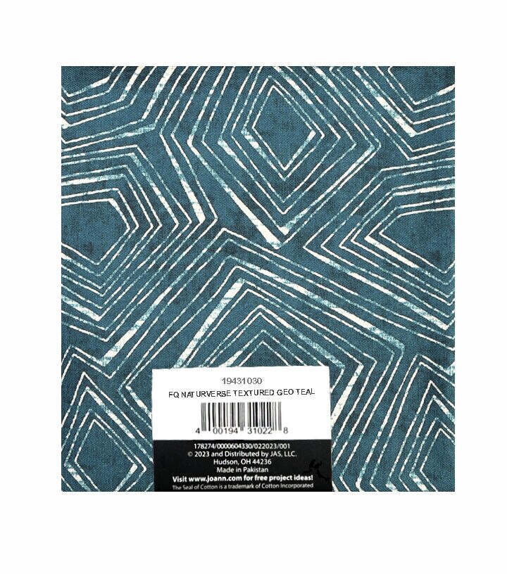 • 18" x 21" Teal Geometric Cotton Fabric Quarter 1pc by Keepsake Calico
