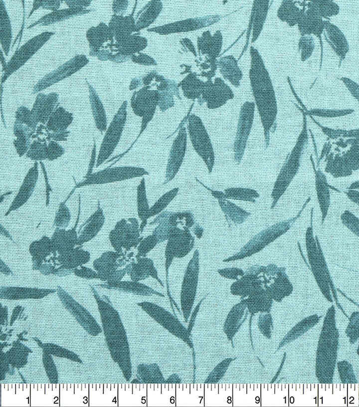 18" x 21" Teal Tonal Floral Cotton Fabric Quarter 1pc by Keepsake Calico