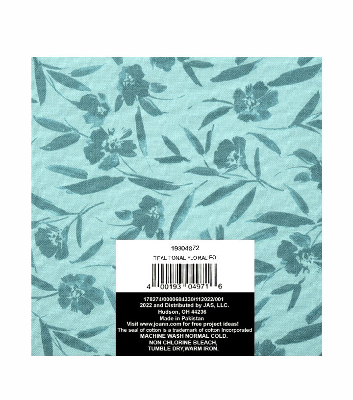 • 18" x 21" Teal Tonal Floral Cotton Fabric Quarter 1pc by Keepsake Calico