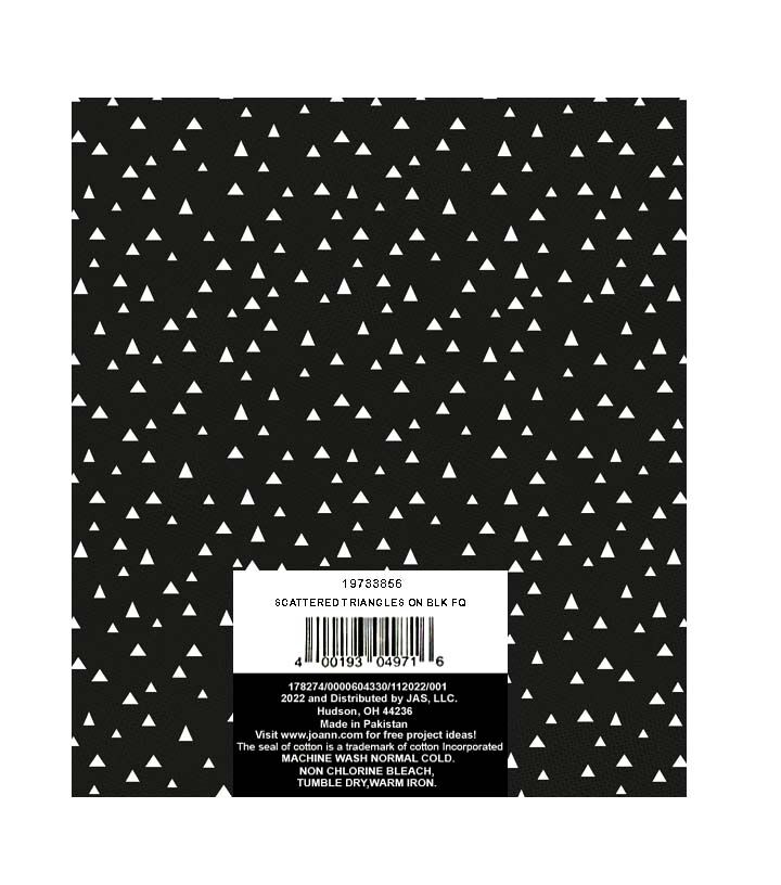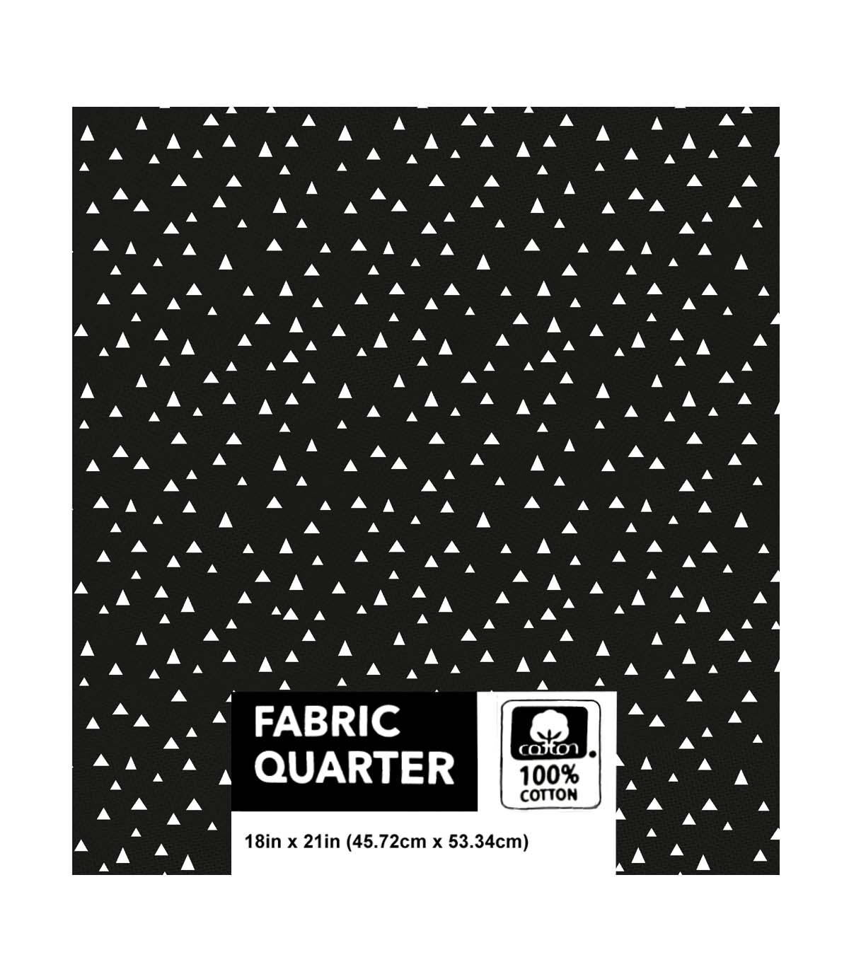 Unleash your imagination with this stunning 18" x 21" Triangles on Black Cotton Fabric Quarter 1pc. Made from 100% cotton, this fabric is perfect for all your DIY projects. The bold black background is adorned with a playful pattern of triangles, making it a versatile choice for any project. Whether you're making a quilt, a tote bag, or a decorative pillow, this fabric is sure to add a touch of sophistication to your creation.