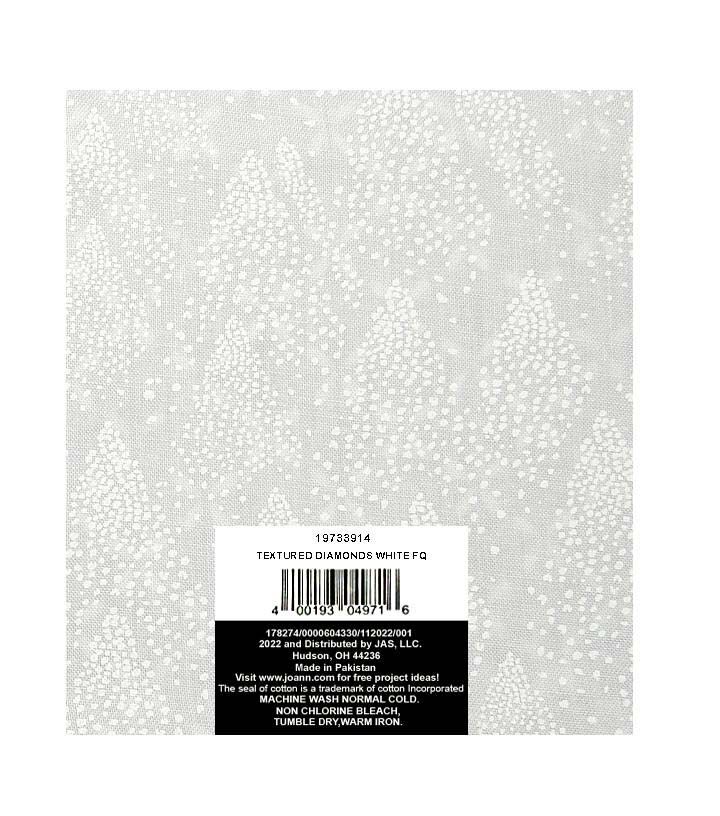 Are you looking for a fabric that is both versatile and elegant? Look no further than the 18" x 21" White Diamonds Quilt Cotton Fabric Quarter by Keepsake Calico. This fabric quarter is perfect for all your DIY projects, from quilting to crafting. The stunning white diamond design is sure to add a touch of sophistication to any project you create.