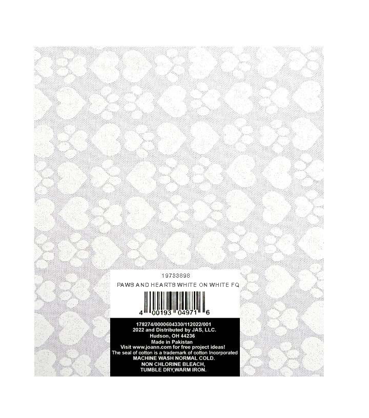 18" x 21" White Paws & Hearts Fabric Quarter by Keepsake Calico