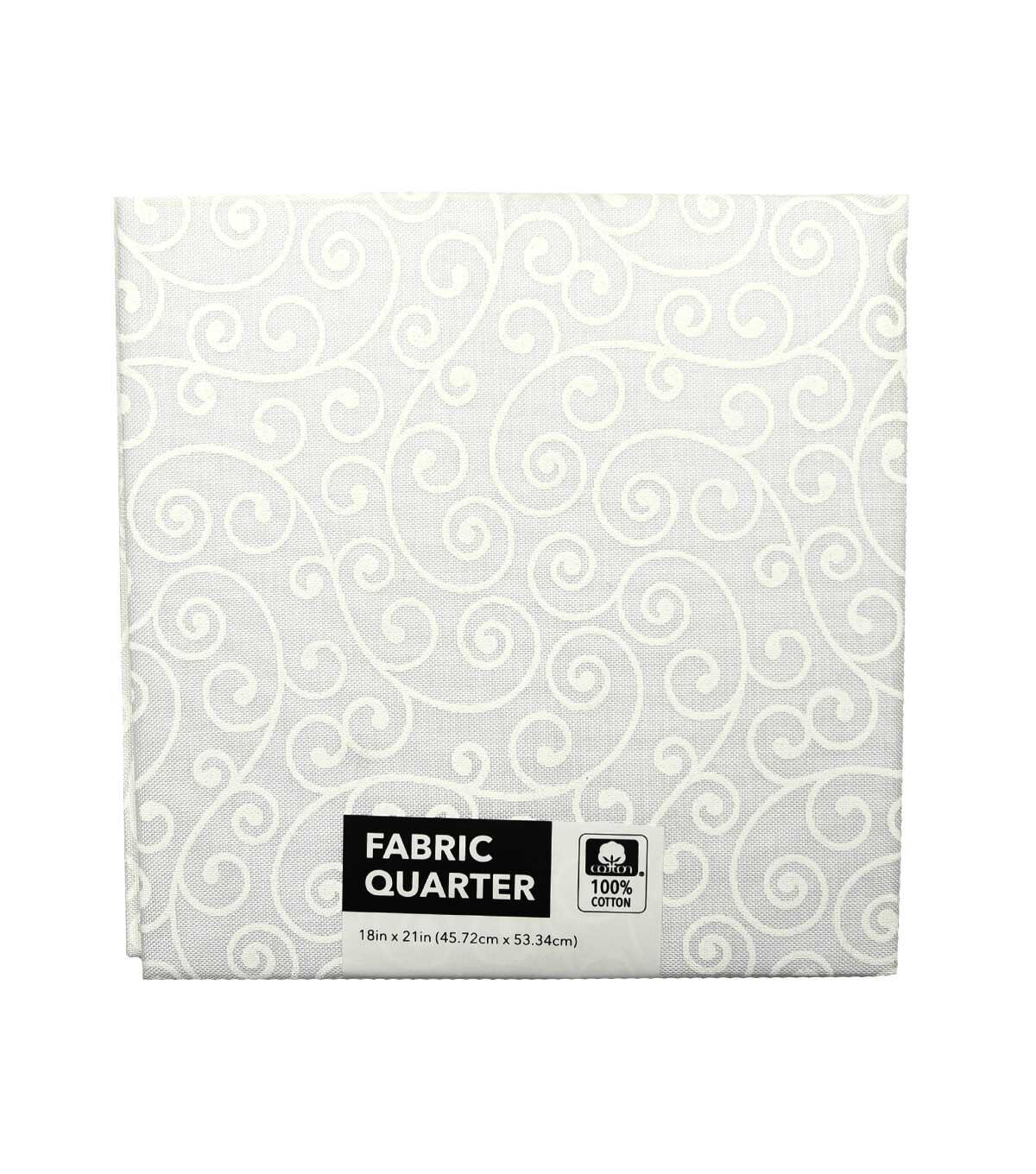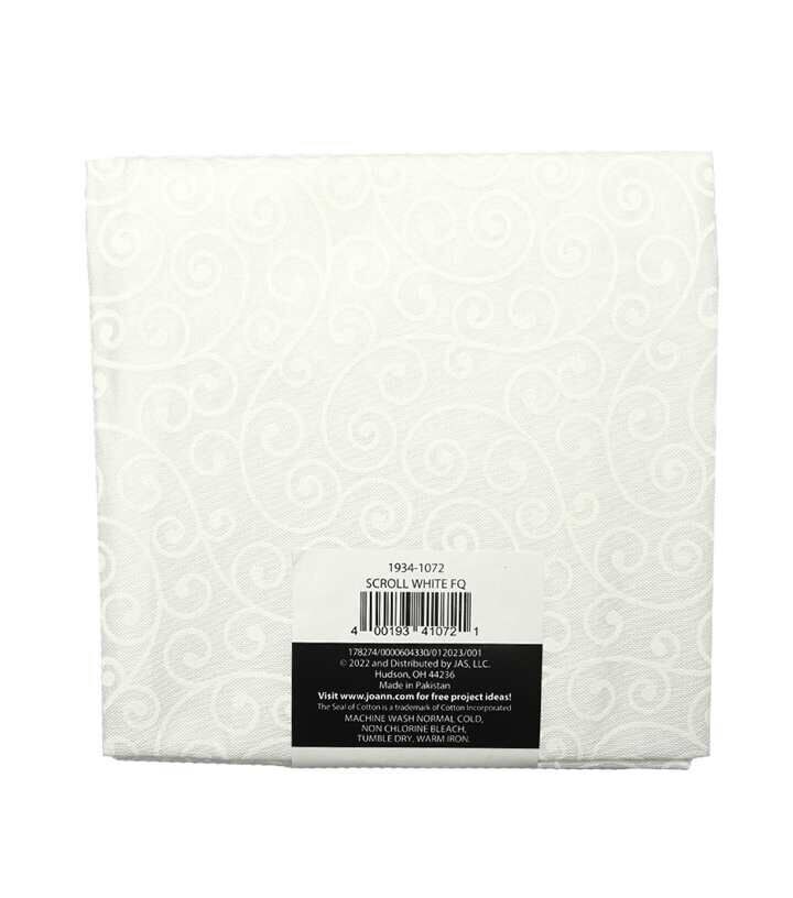 • 18" x 21" White Scroll Cotton Fabric Quarter 1pc by Keepsake Calico