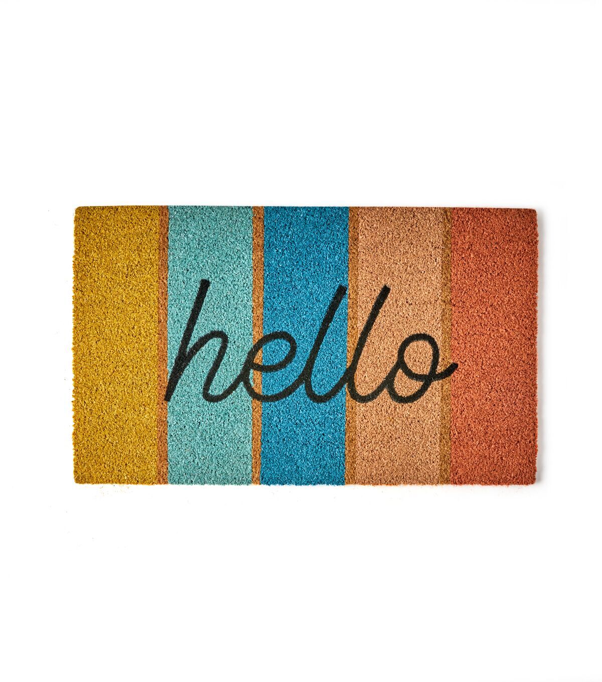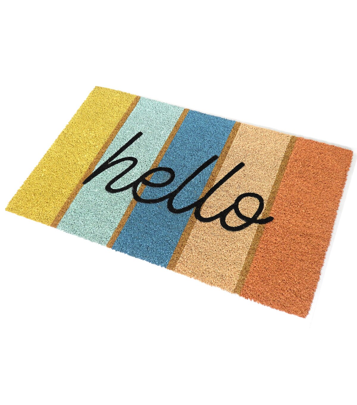 18" x 30" Summer Multicolor Hello Stripe Coir Doormat by Place & Time