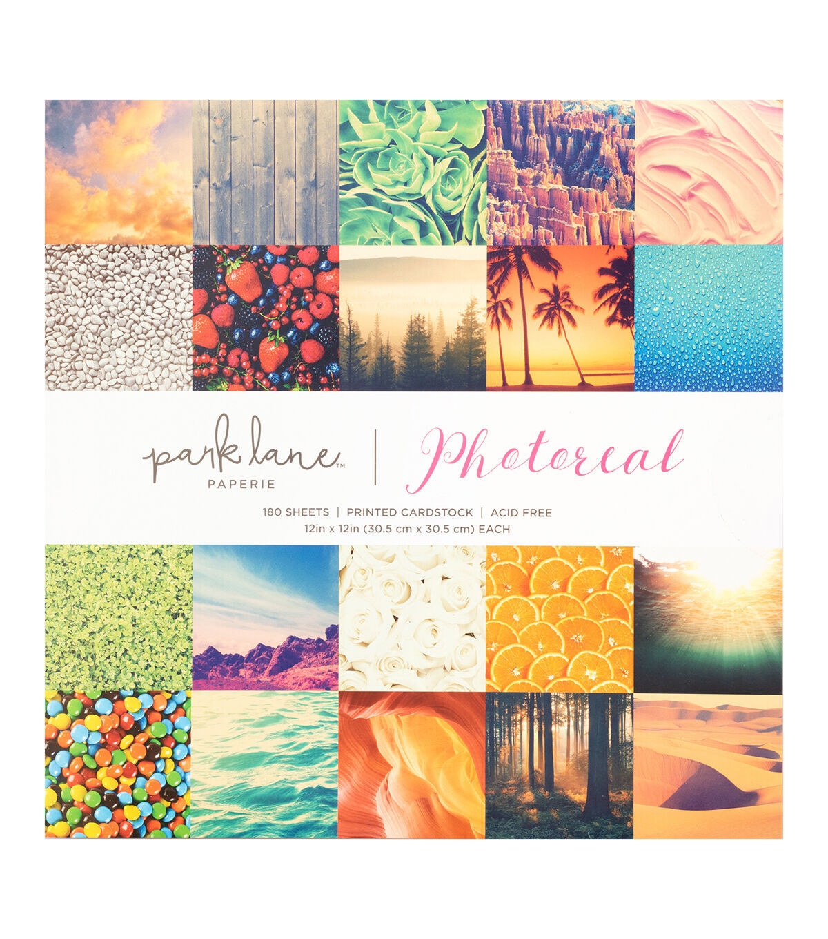 Park Lane paper pads have something for everyone and every style! Bold, beautiful colors complement a variety of patterns and finishes to fit nearly any project you're working on. 12x12 packs are perfect for scrapbook pages, albums, handmade cards and more. Pick and choose from a variety of colorful packs for a style that's uniquely you! This pack includes 180 sheets of 12x12-inch paper in photoreal designs.
