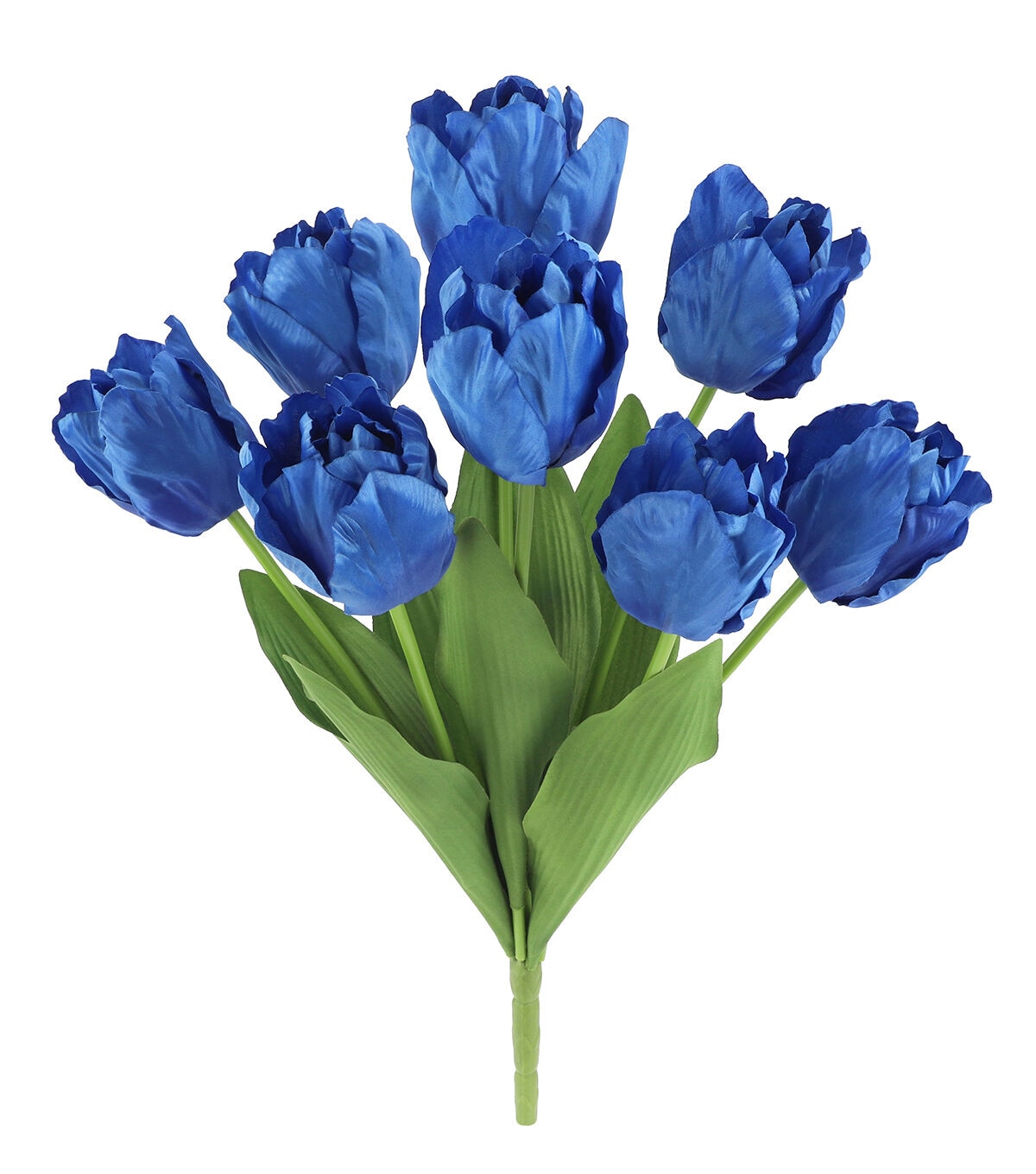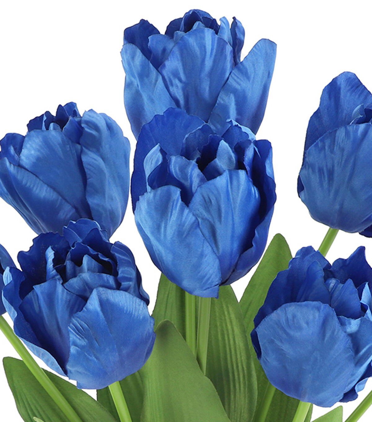 Bring the beauty of spring indoors with the Spring Tulip Bush by Bloom Room. This stunning floral arrangement features tulip flowers in a brilliant shade, complemented by lush green leaves for a complete look. Whether you use it as a standalone accent piece for your entryway table or combine it with other floral and greenery stems for added visual interest, this tulip bush is sure to liven up your seasonal home decor.