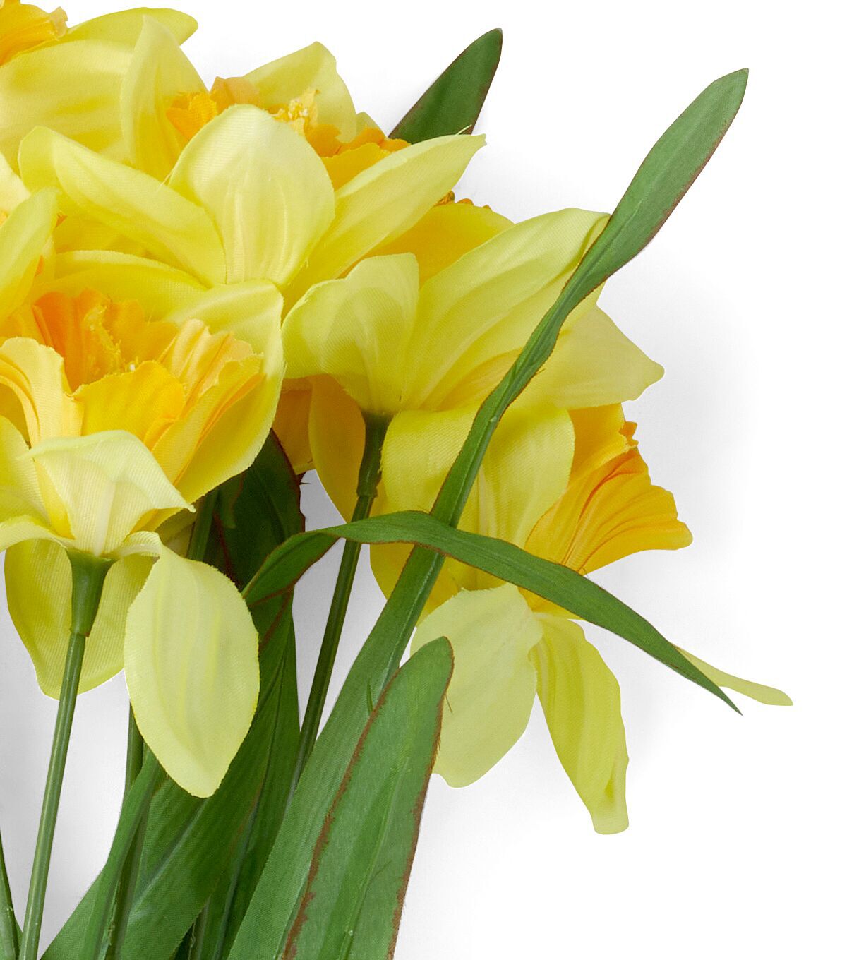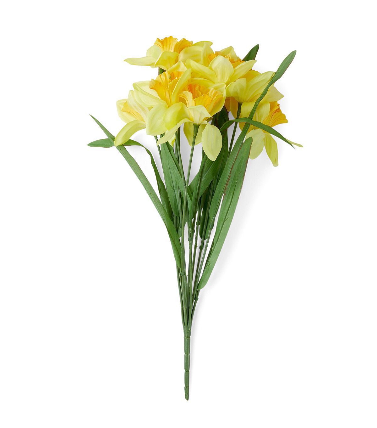 Pep up your home decor instantly using the Spring Yellow Daffodil Bush by Bloom Room. This realistic floral bush is designed with attractive daffodils in a brilliant yellow shade. It also bears green leaves that give it a contrasting look. You can place this faux bush in a clear glass vase as is or team it with greenery stems for added visual appeal.