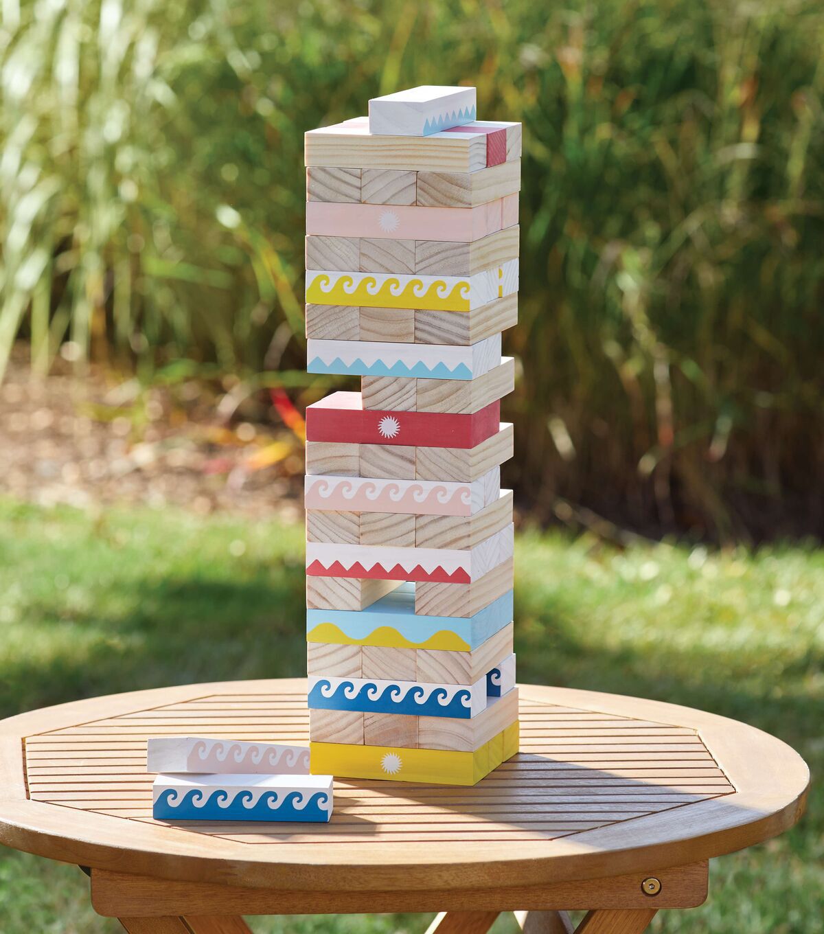 Experience Endless Fun with the 19" Summer Wood Toppling Tower Giant Outdoor Yard Game by Place & Time