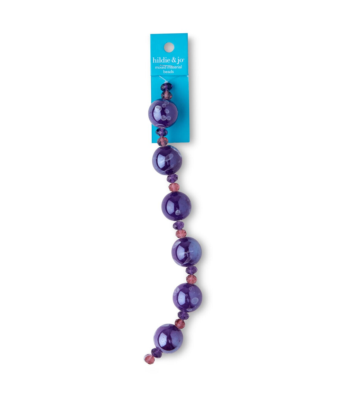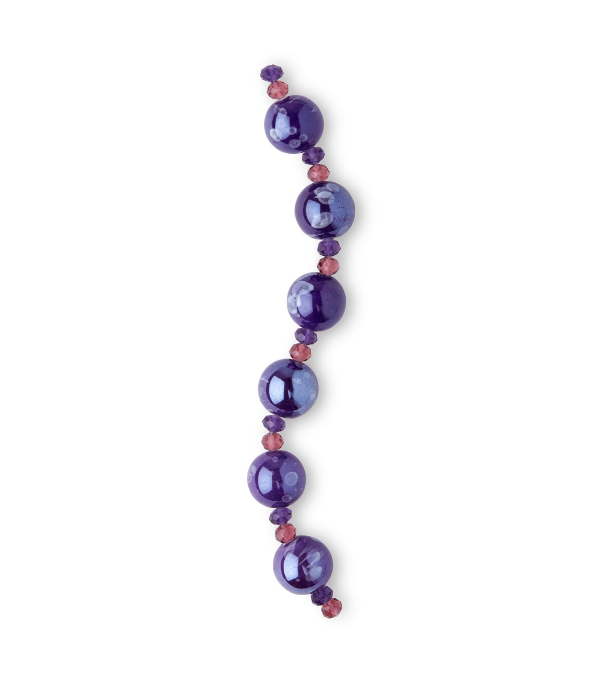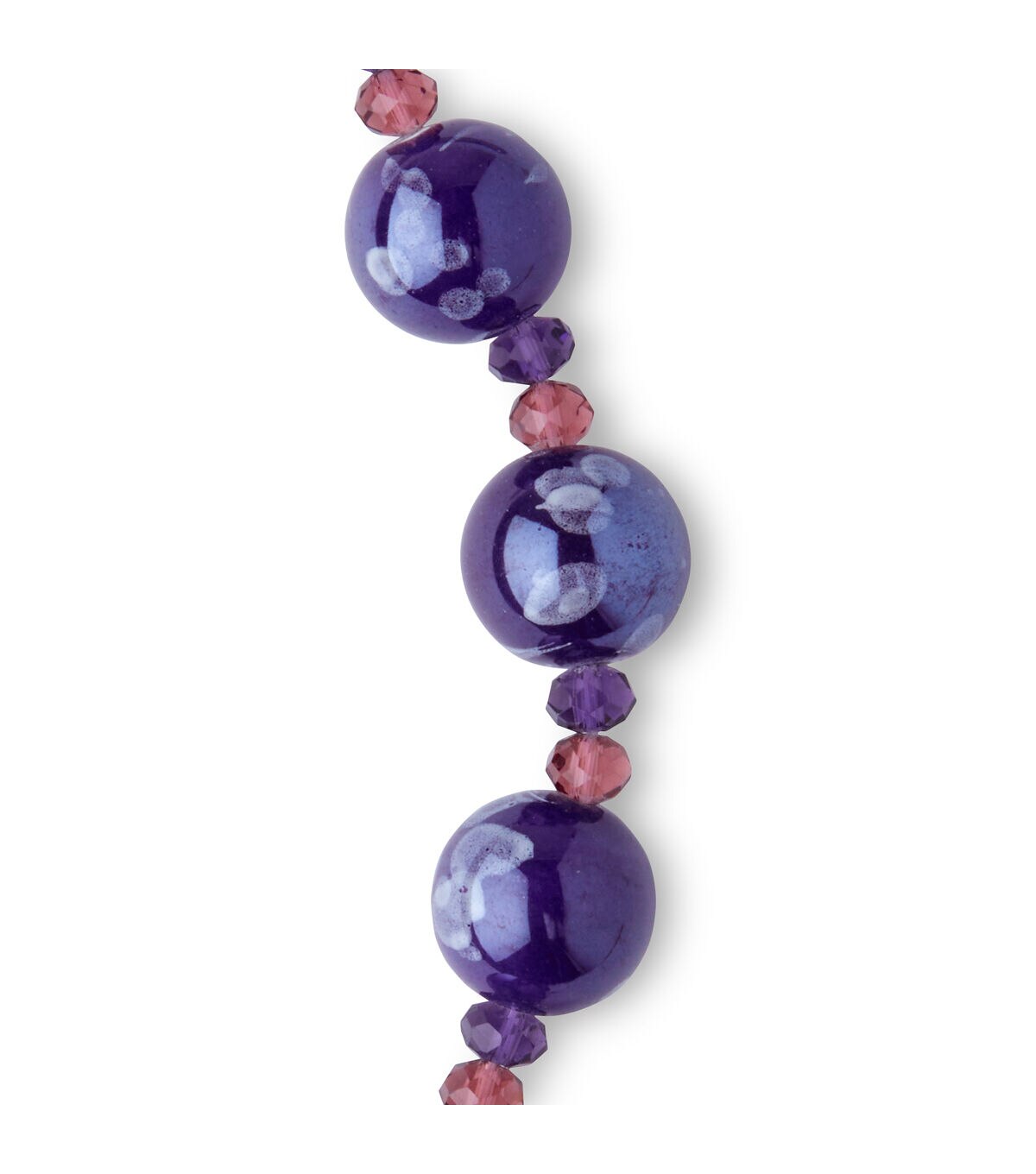 Design elegant jewelry pieces using the hildie & jo Round Ceramic Shiny Bead Strand - Dark Purple & White. These beautiful, eye-catching 19 mm metallic purple and white ceramic beads sport a smooth and shiny surface. This pack contains a strand that includes matching 7.5 mm purple faceted glass spacer beads. Combine them with other beads, chains and jewelry elements to create striking designs.