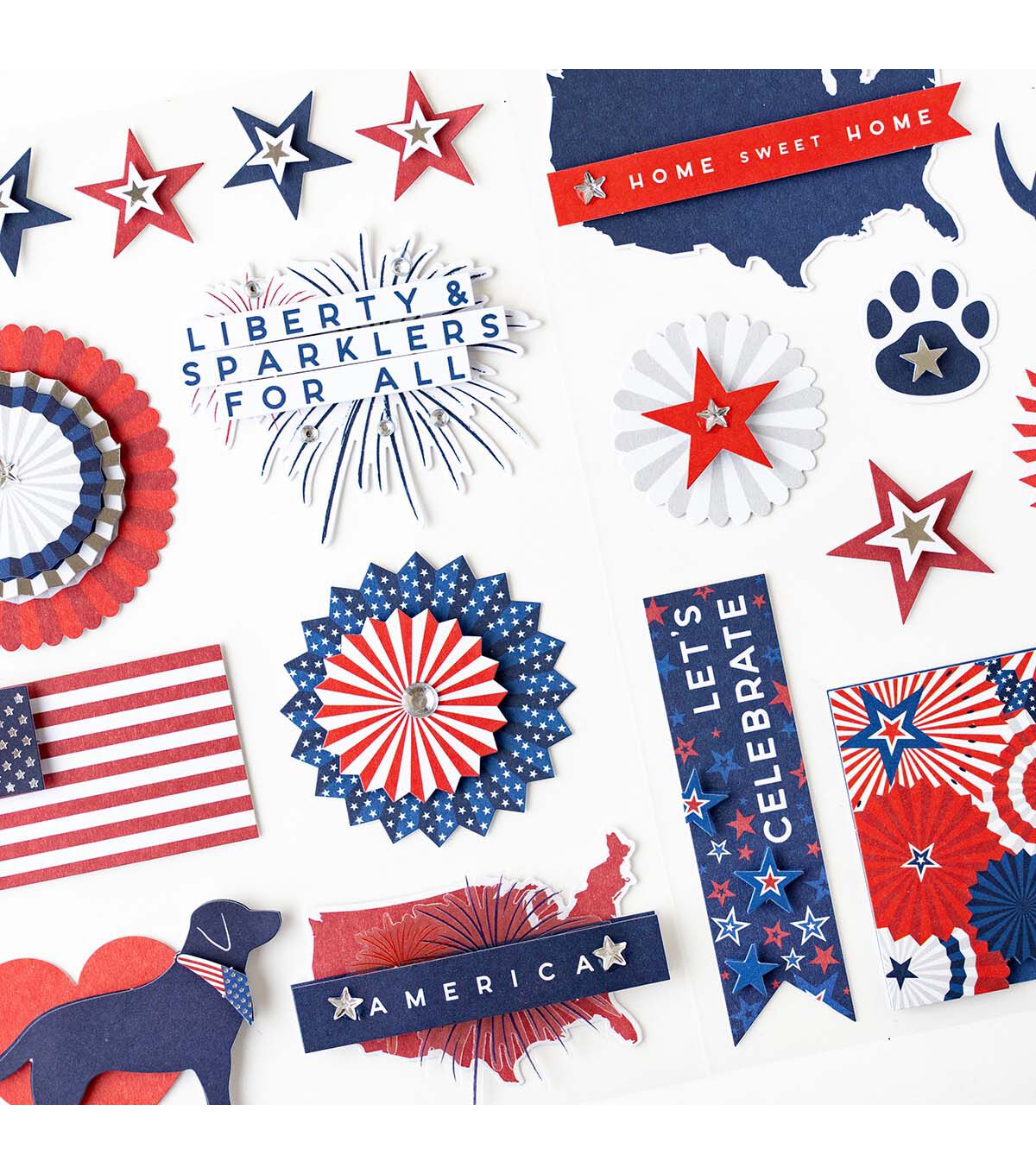 Celebrate your love for the red, white, and blue with our Patriotic Dimensional Stickers – a majestic ensemble of 19 stickers across 2 sheets, featuring an impressive mix of 3D designs. Immerse yourself in the depth and grandeur of patriotism with these meticulously crafted stickers that bring a touch of dimensional elegance to your expressions of American pride!