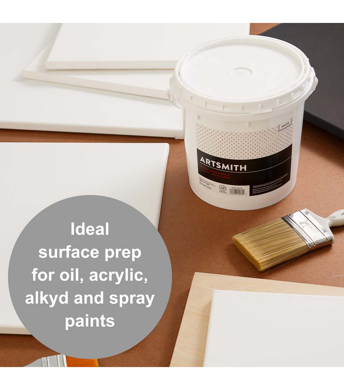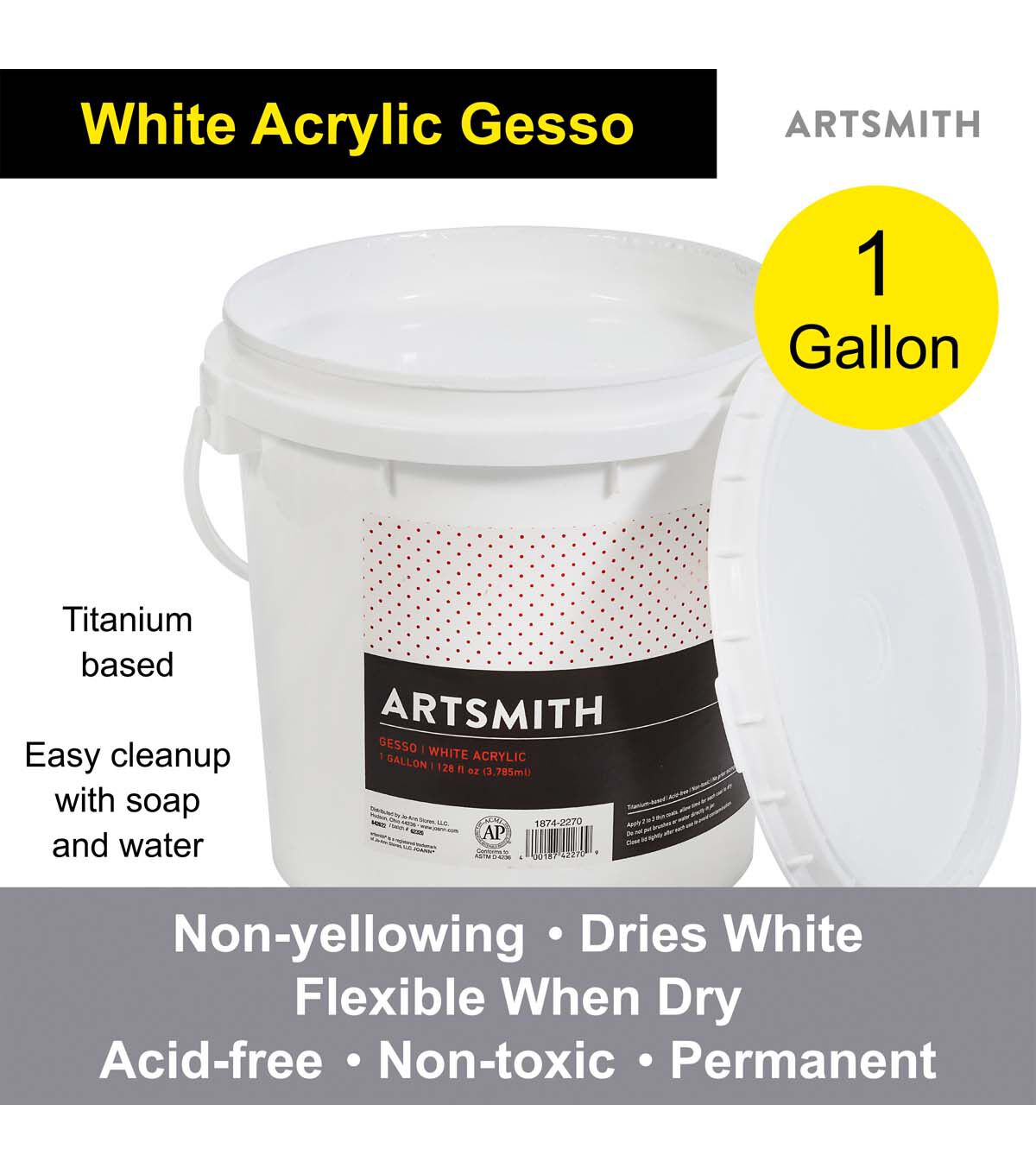 Artsmith's titanium-based white acrylic primer provides a reliable, classic foundation which is permanent, non-yellowing and flexible when dry. No prior sizing necessary. Great for artists and students alike!