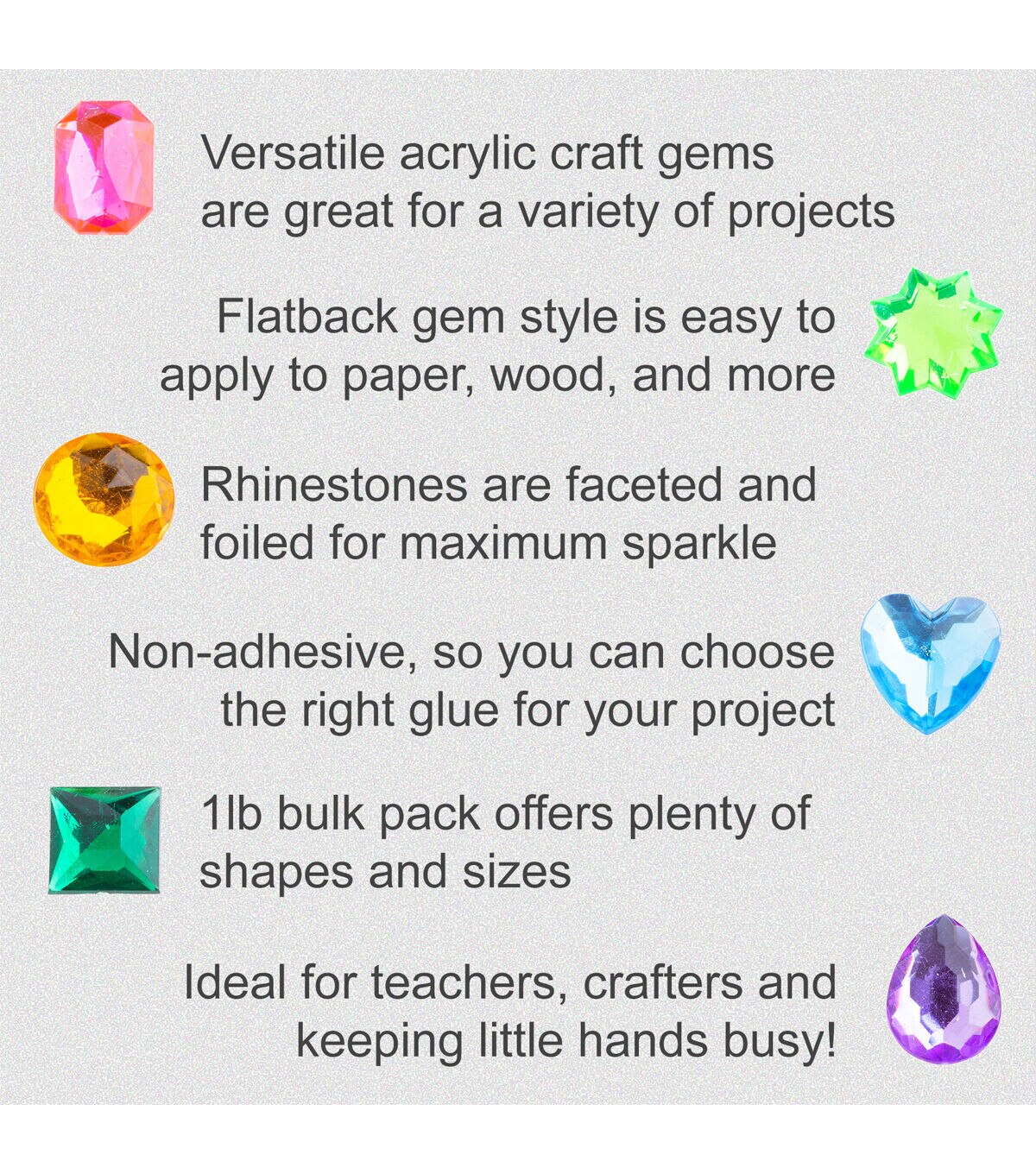The hildie & jo Large Acrylic Rhinestones are just what you need to add bling to a range of jewelry projects. This bag includes acrylic rhinestones in assorted shapes. Use them to add sparkle to jewelry boxes, scrapbook covers, headbands, belts, lampshades and photo frames, the possibilities are endless. They are also great for kids' crafts.