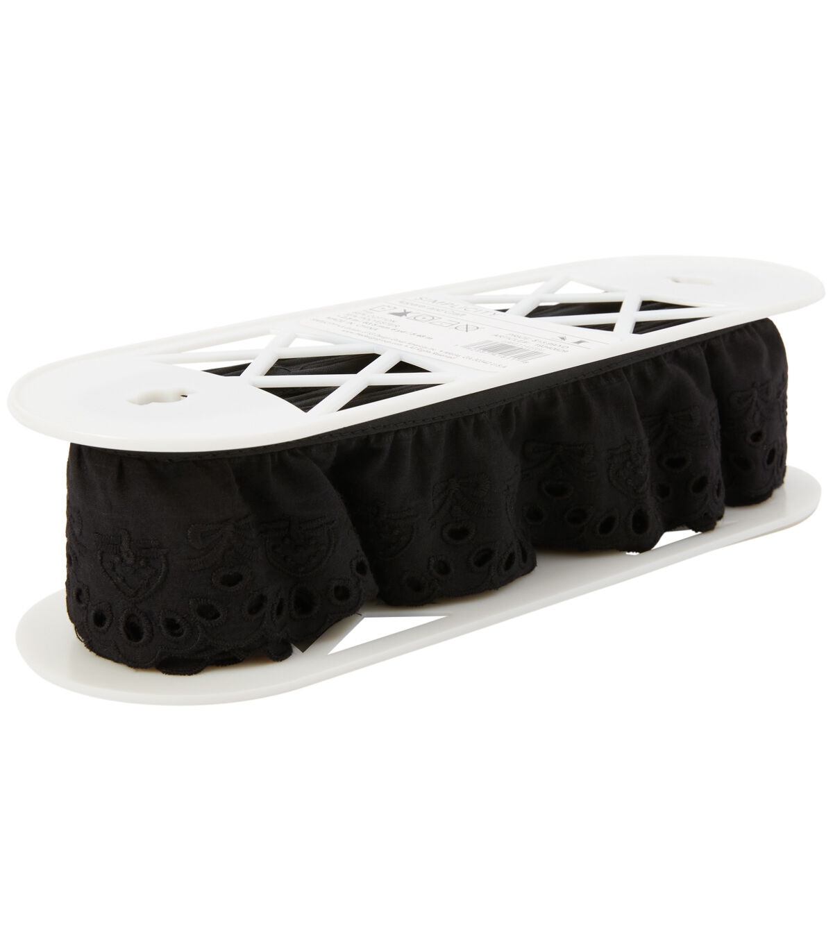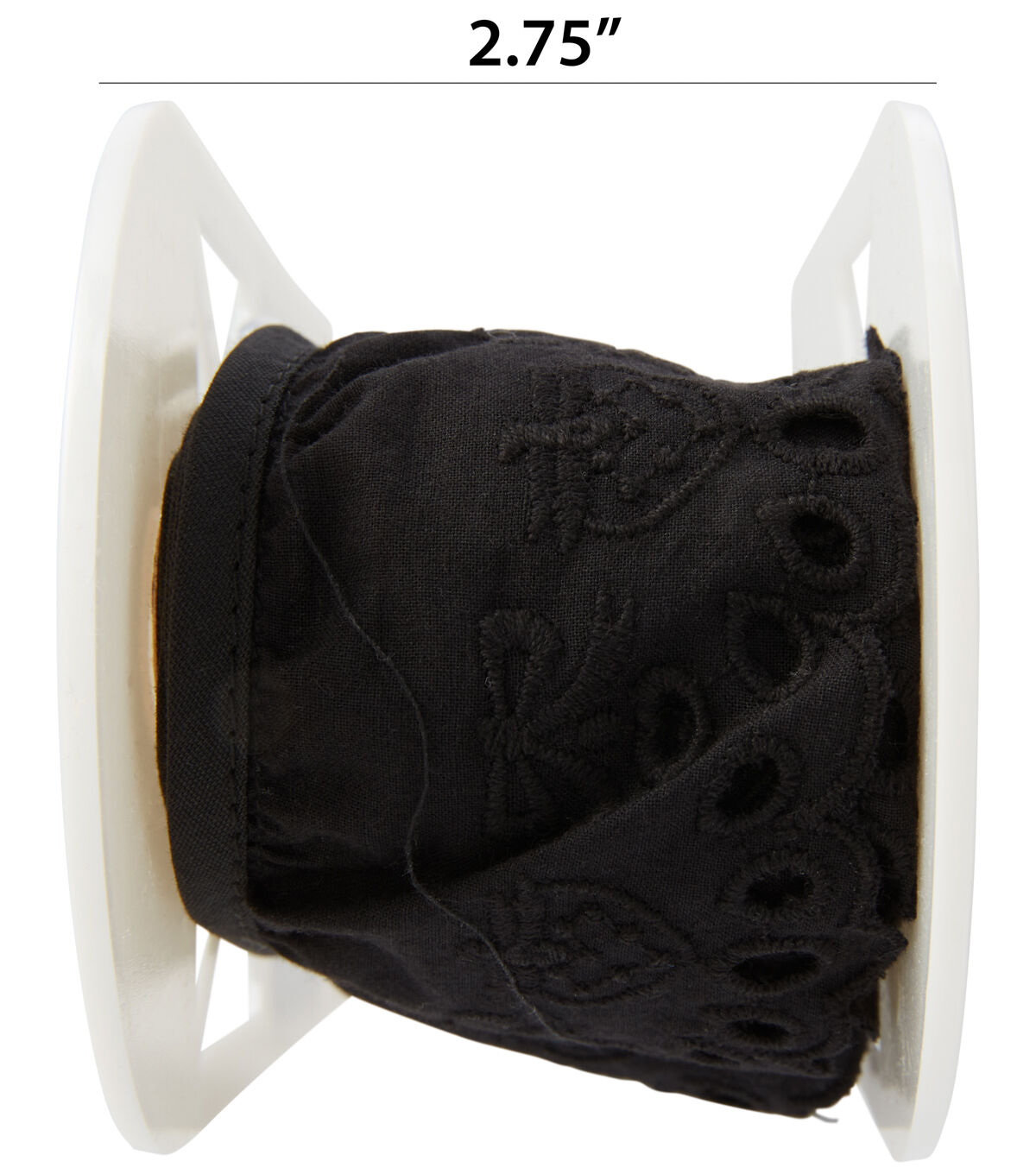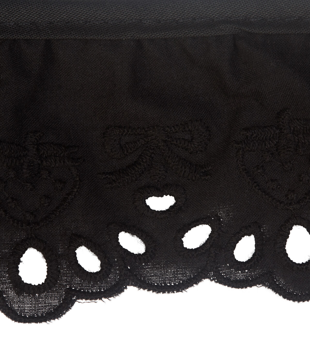Simplicity 2-1/2 inch Eyelet Ruffled Black Trim. Decorate your apparel, handmade pillows, costumes, lampshades and more.