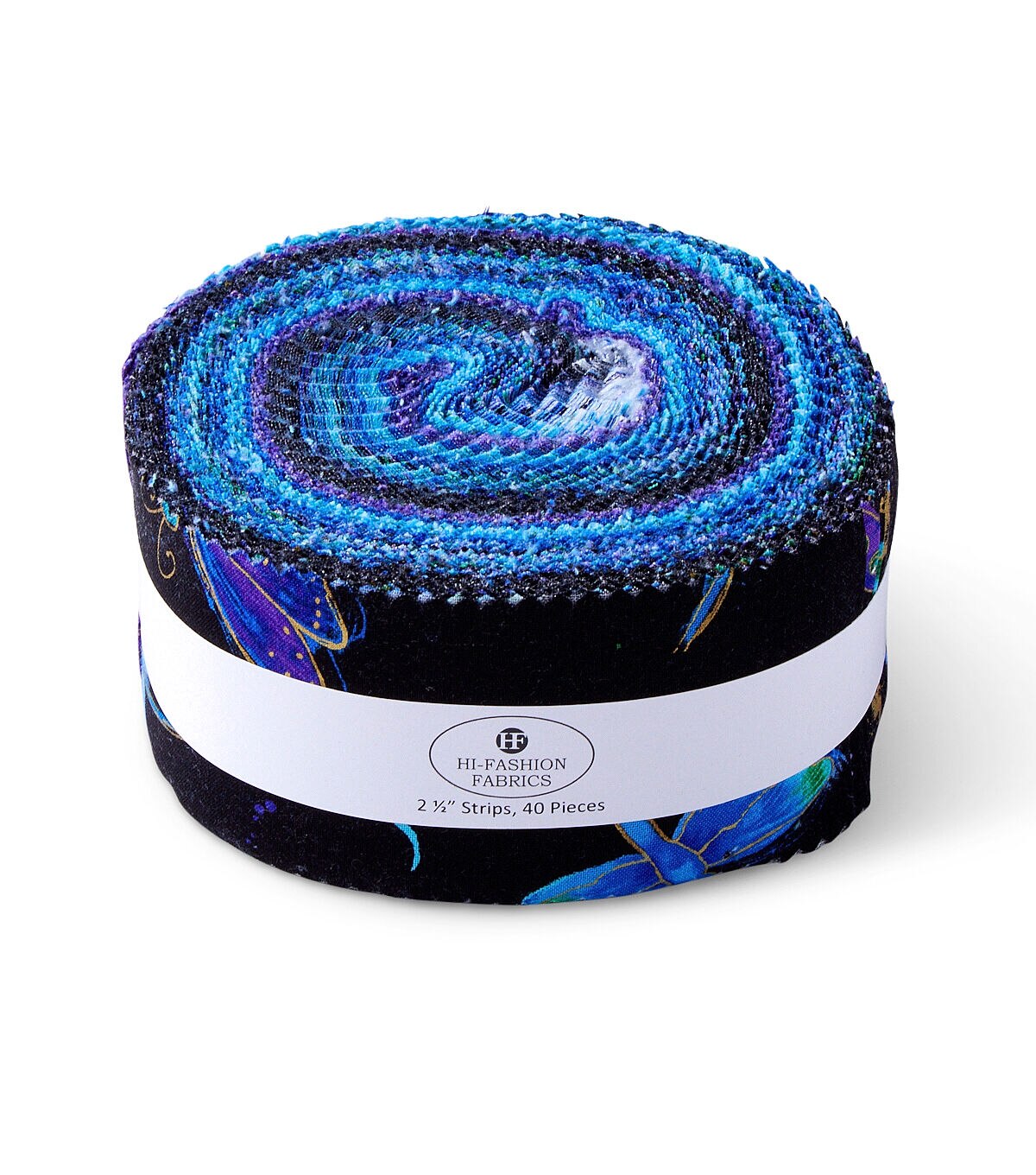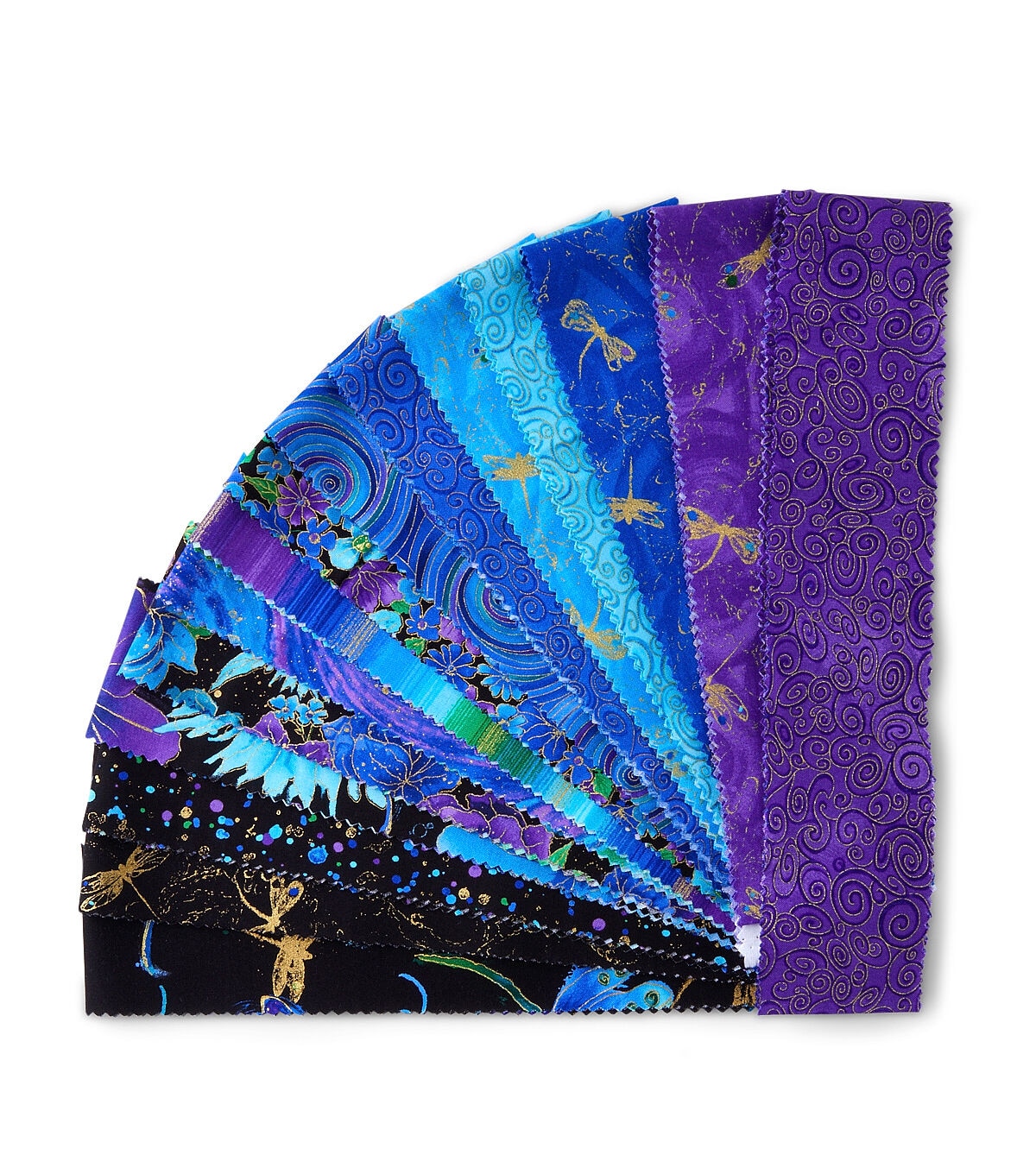 Elevate Your Sewing Projects with 2.5" Hi Fashion Batik Dragonfly Metallic Cotton Fabric Strips 40pc