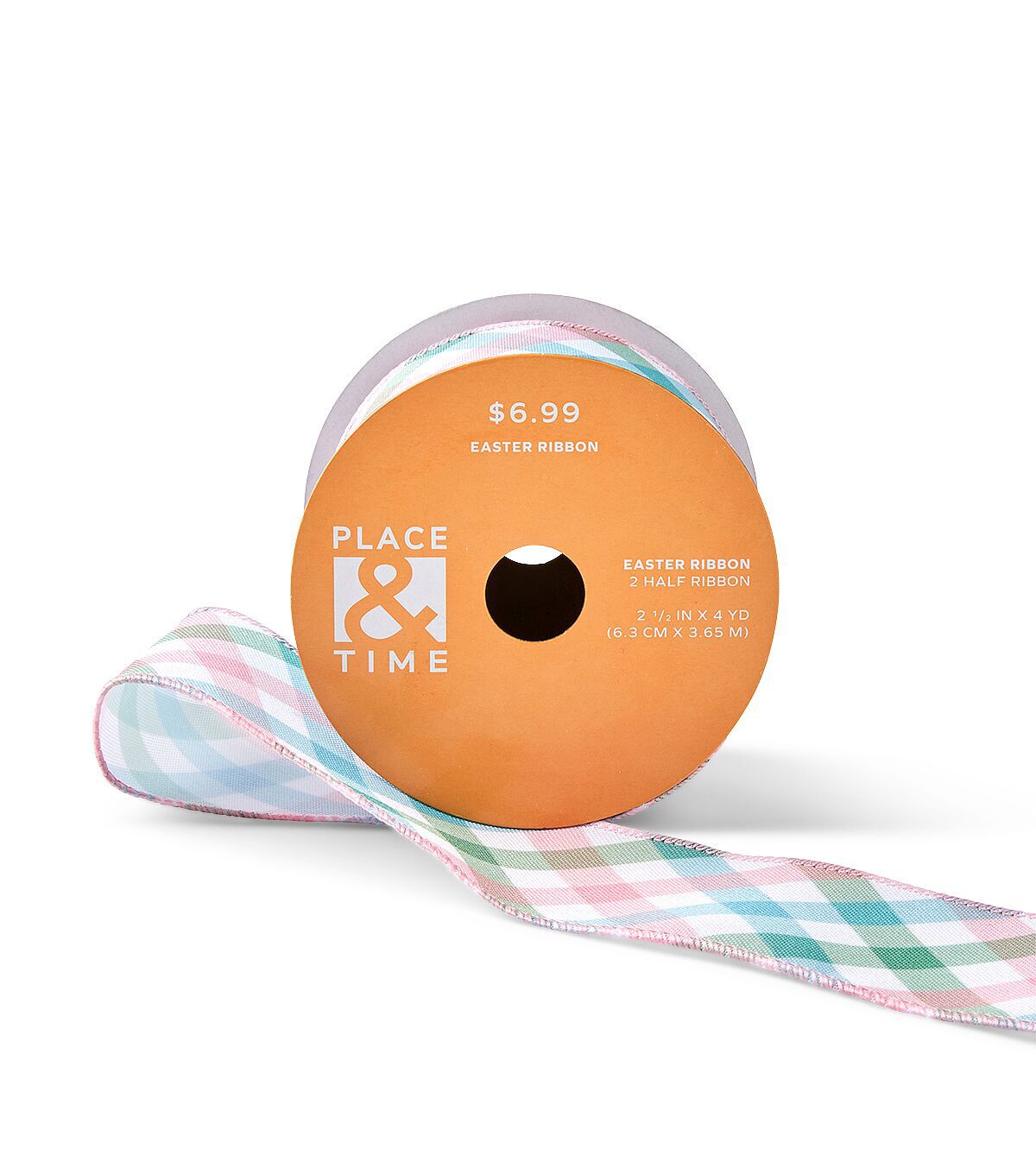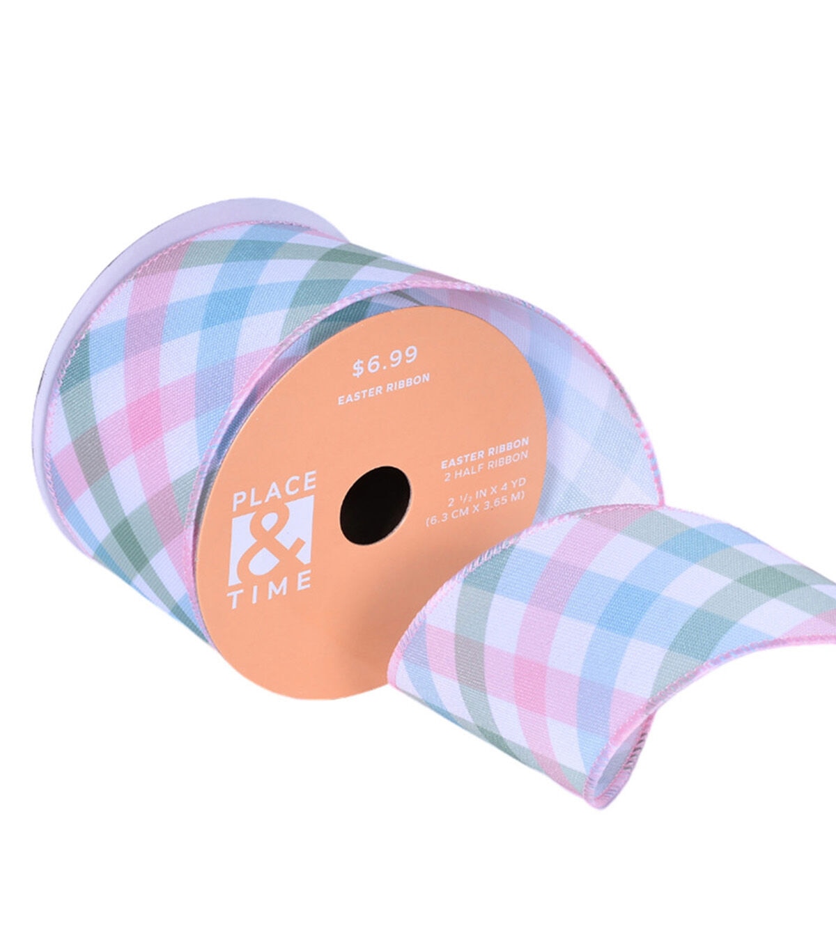 The Easter Pastel Plaid Ribbon by Place & Time is just what you need to beautify handmade decor projects this Easter. This ribbon sports a plaid pattern in pastel hues. You can use it to adorn Easter baskets or seasonal wreaths, or tie it around candy jars, gift boxes, wooden crates and more.